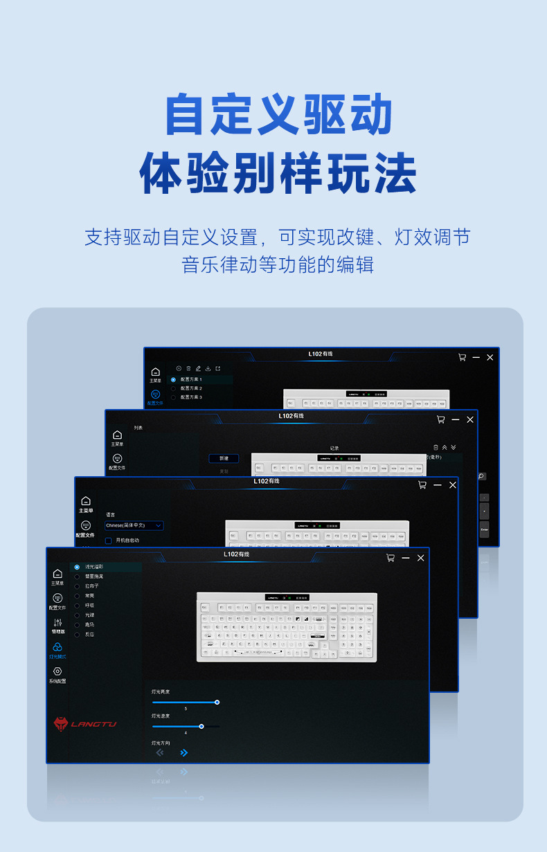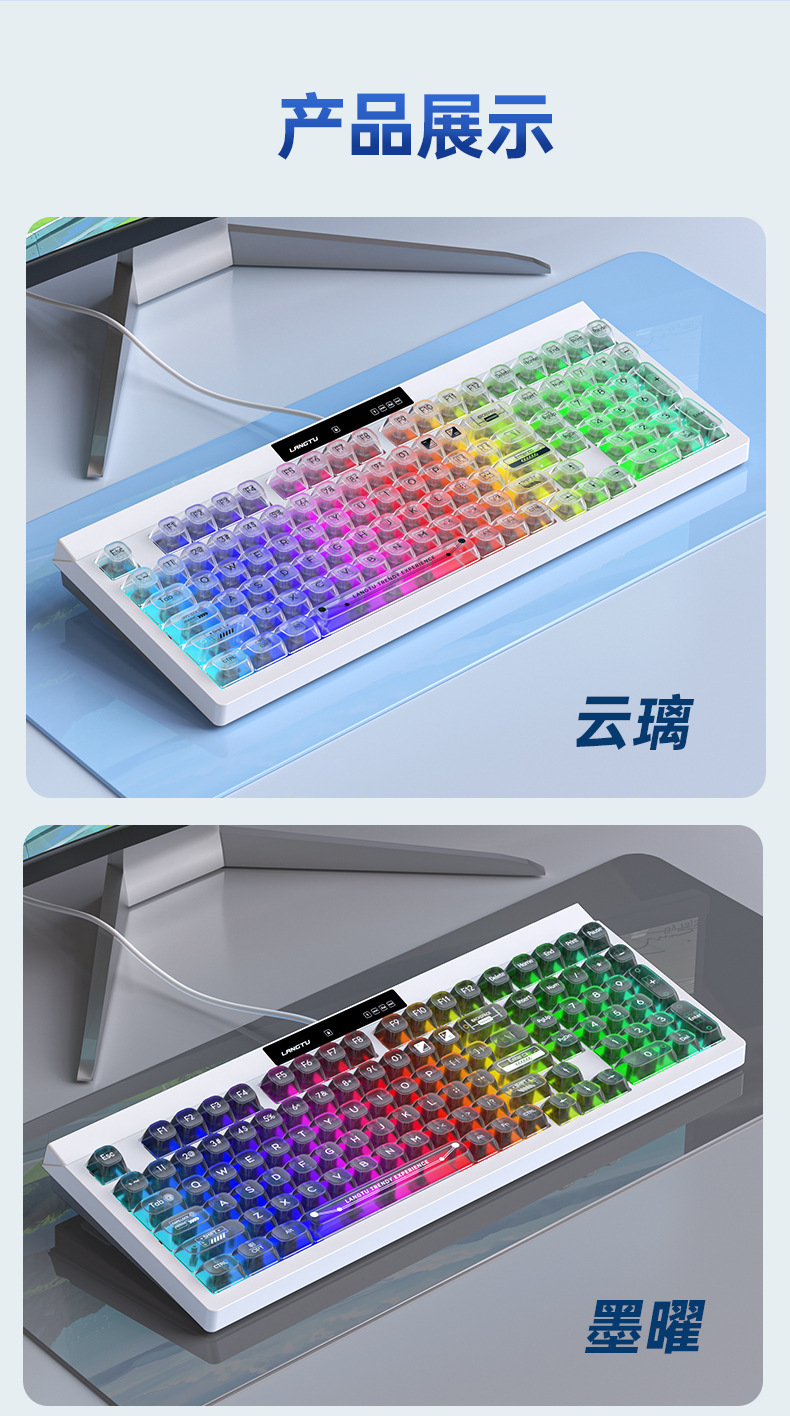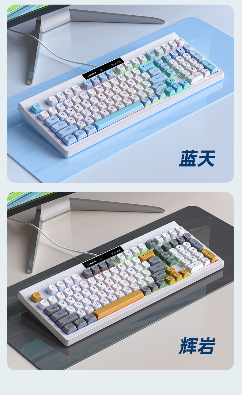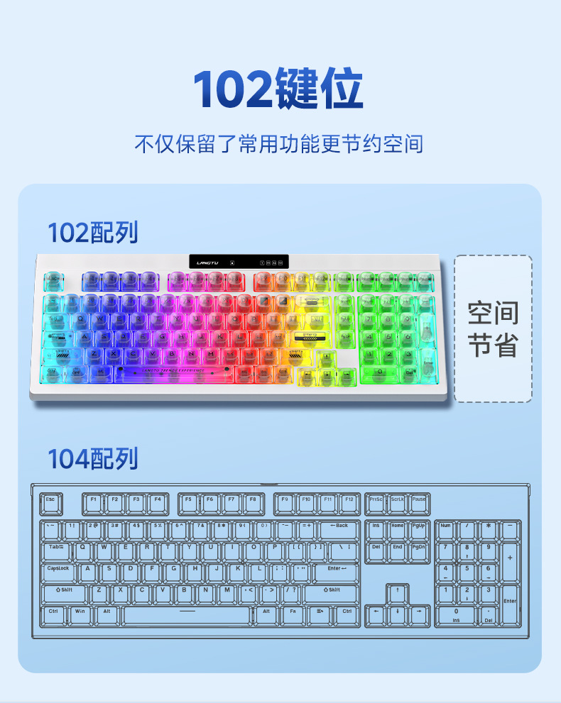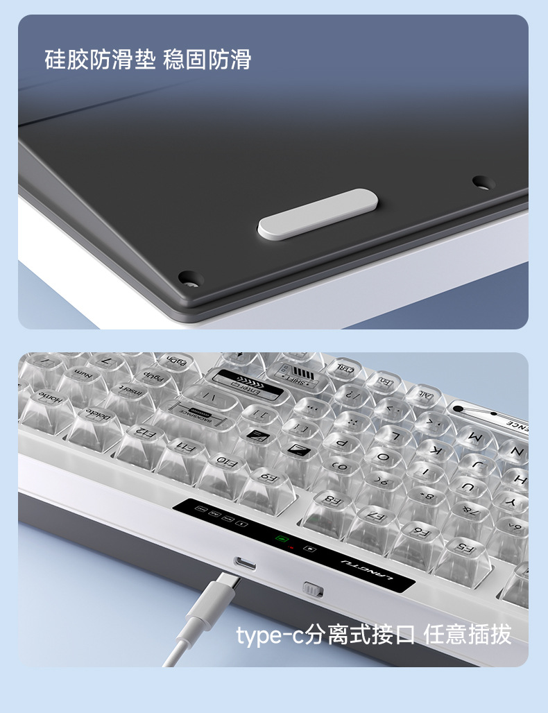 狼途L102高颜值办公静音薄膜键盘无线三模机械手感游戏电竞键盘