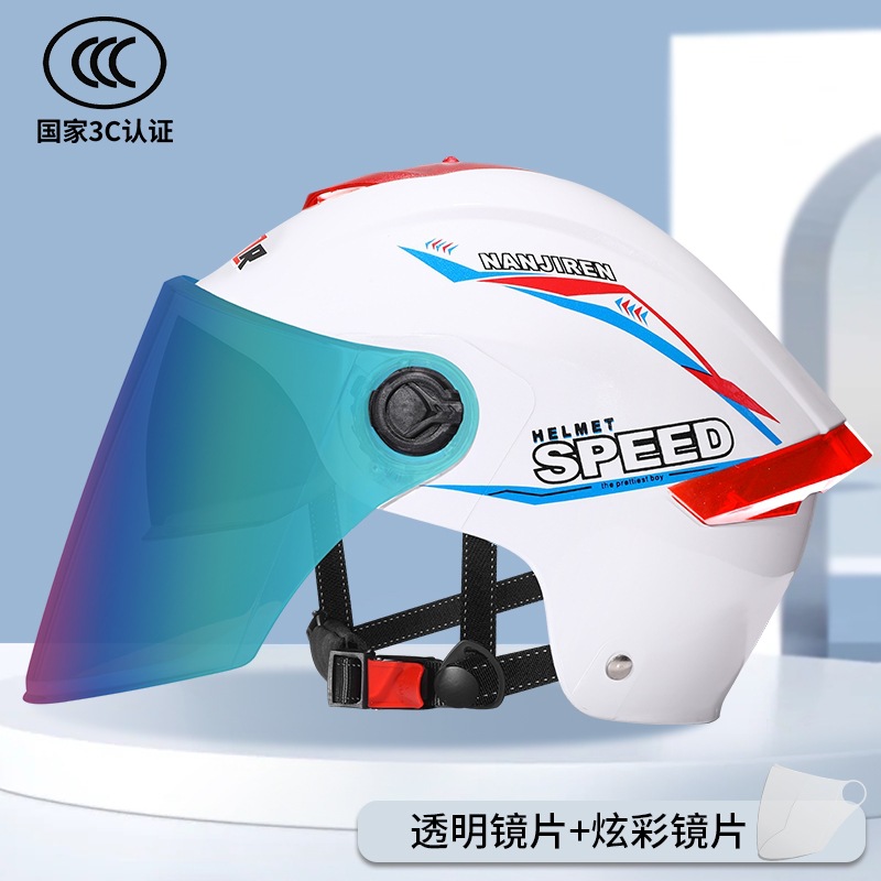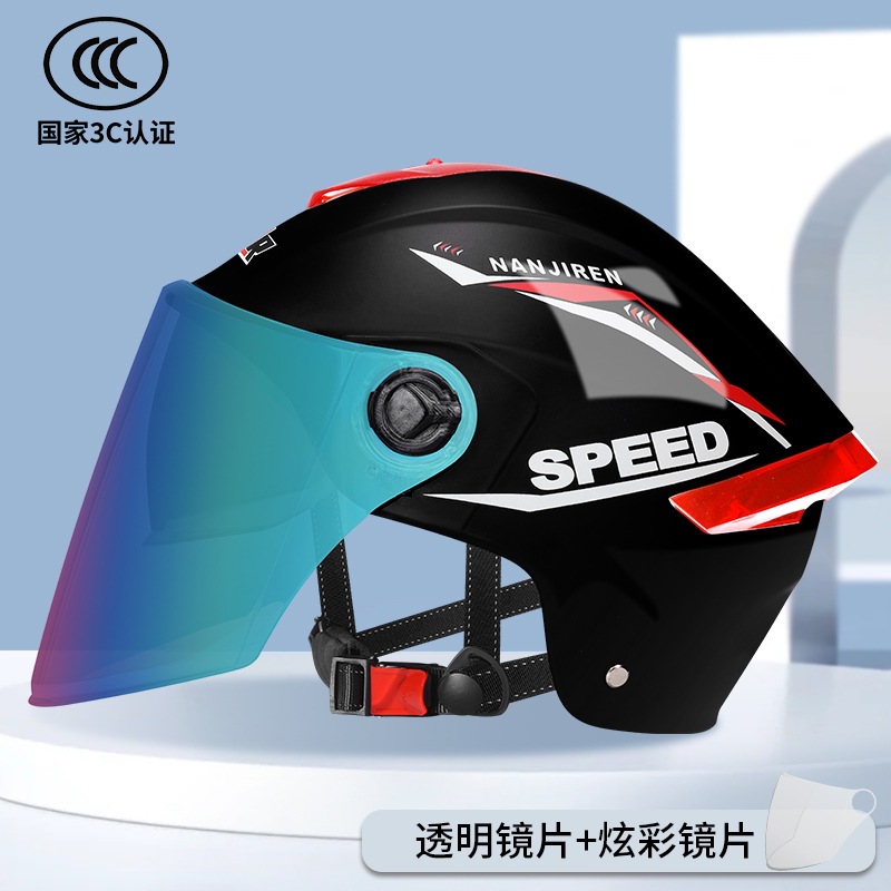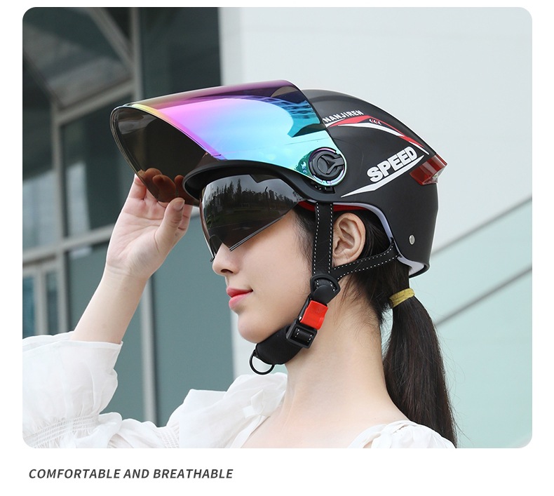 남성과 여성을 위한 전기 자동차 헬멧 3C 인증 여름 이중 거울 태양 보호 차양 배터리 자동차 사이클링 반 헬멧 안전 헬멧