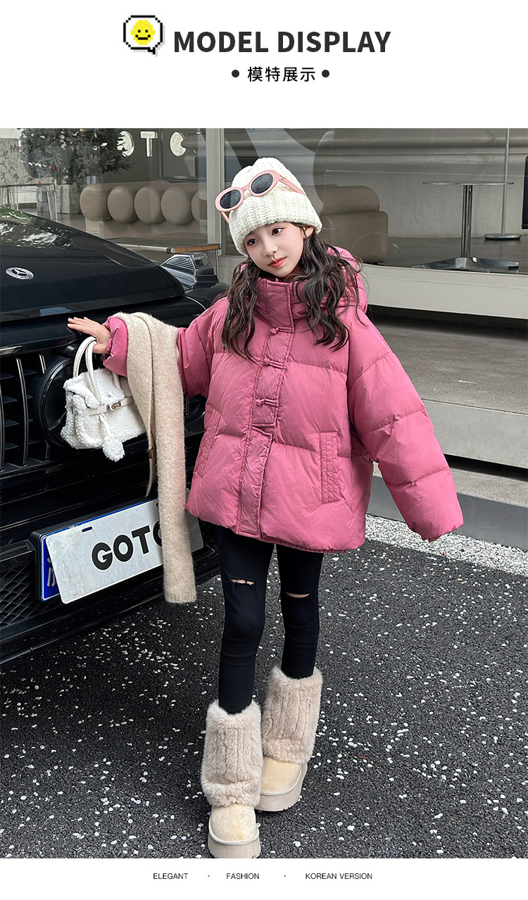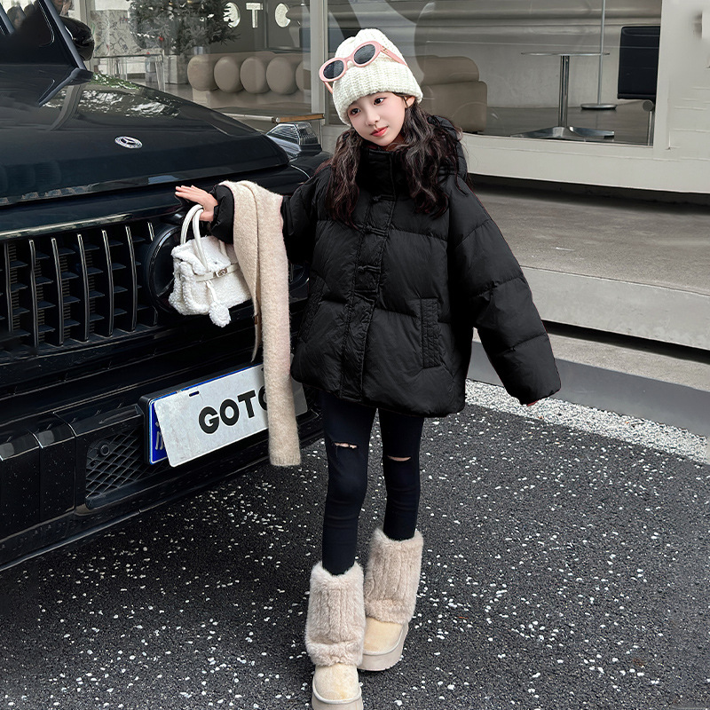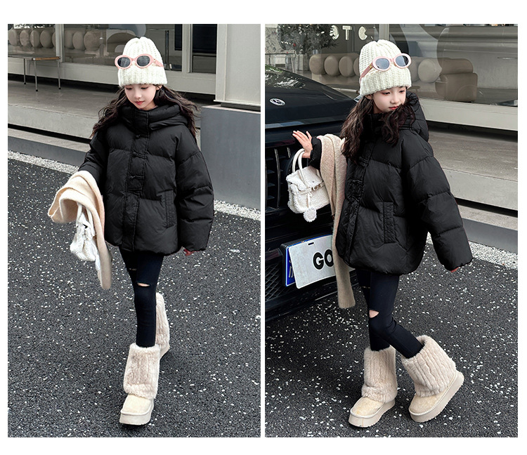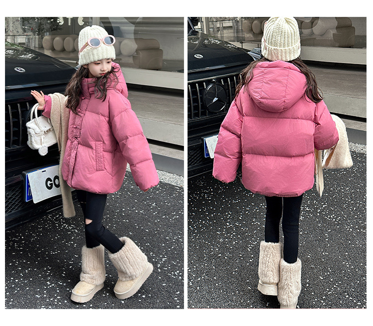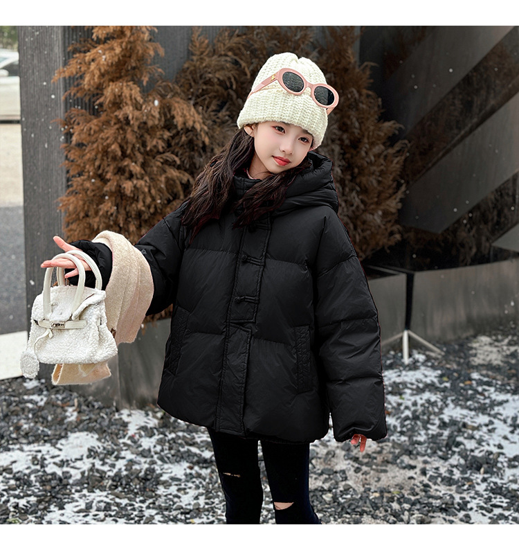 소녀 Guofeng 코튼 패딩 재킷 2024 겨울 새로운 큰 어린이 서양식 유행 겨울 옷 두꺼운 후드 빵 자켓면 패딩 코트스토어 가기