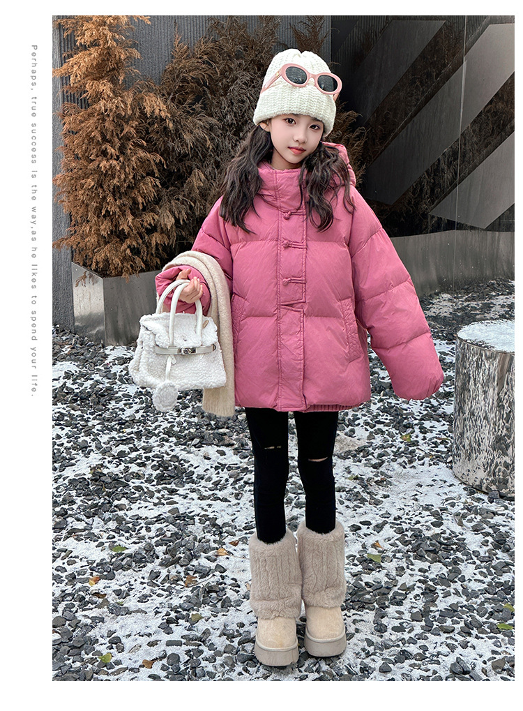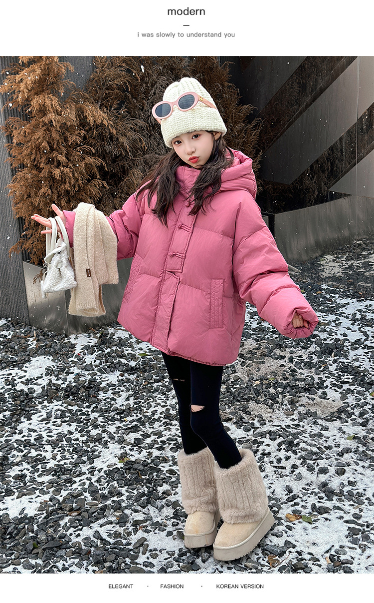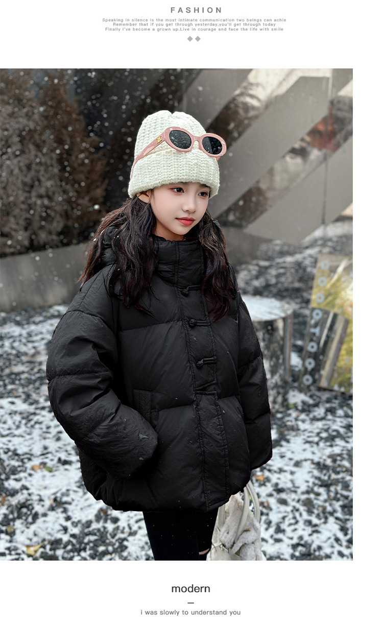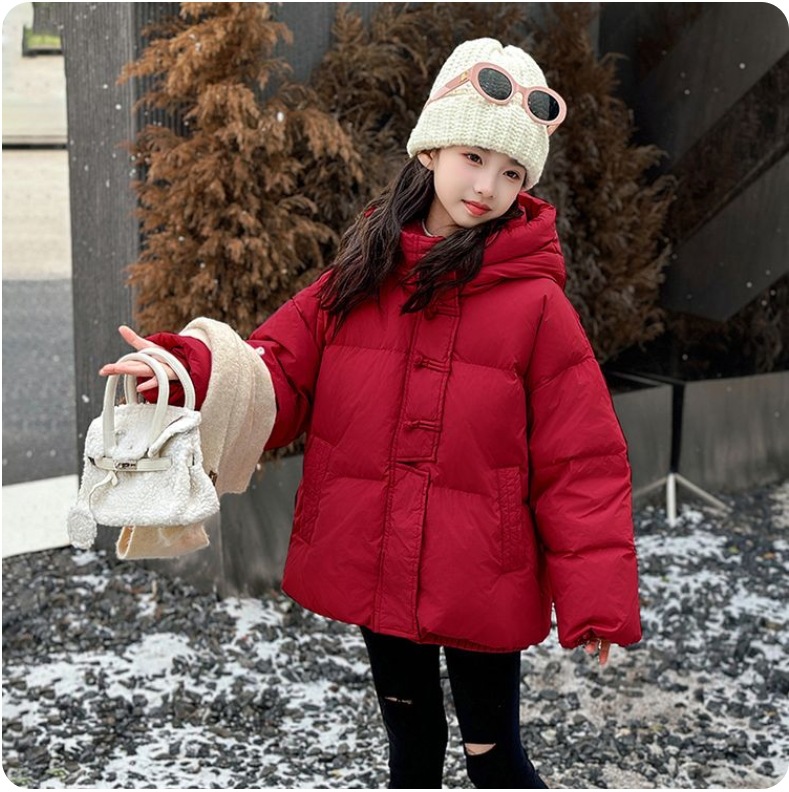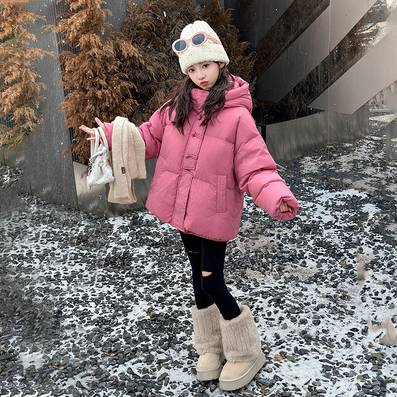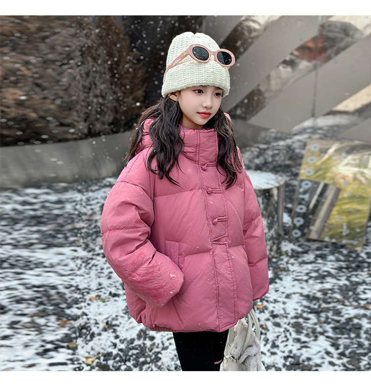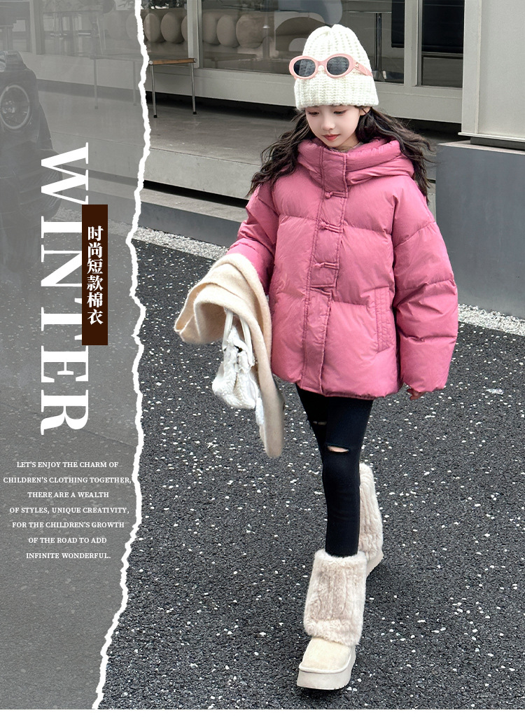 소녀 Guofeng 코튼 패딩 재킷 2024 겨울 새로운 큰 어린이 서양식 유행 겨울 옷 두꺼운 후드 빵 자켓면 패딩 코트
