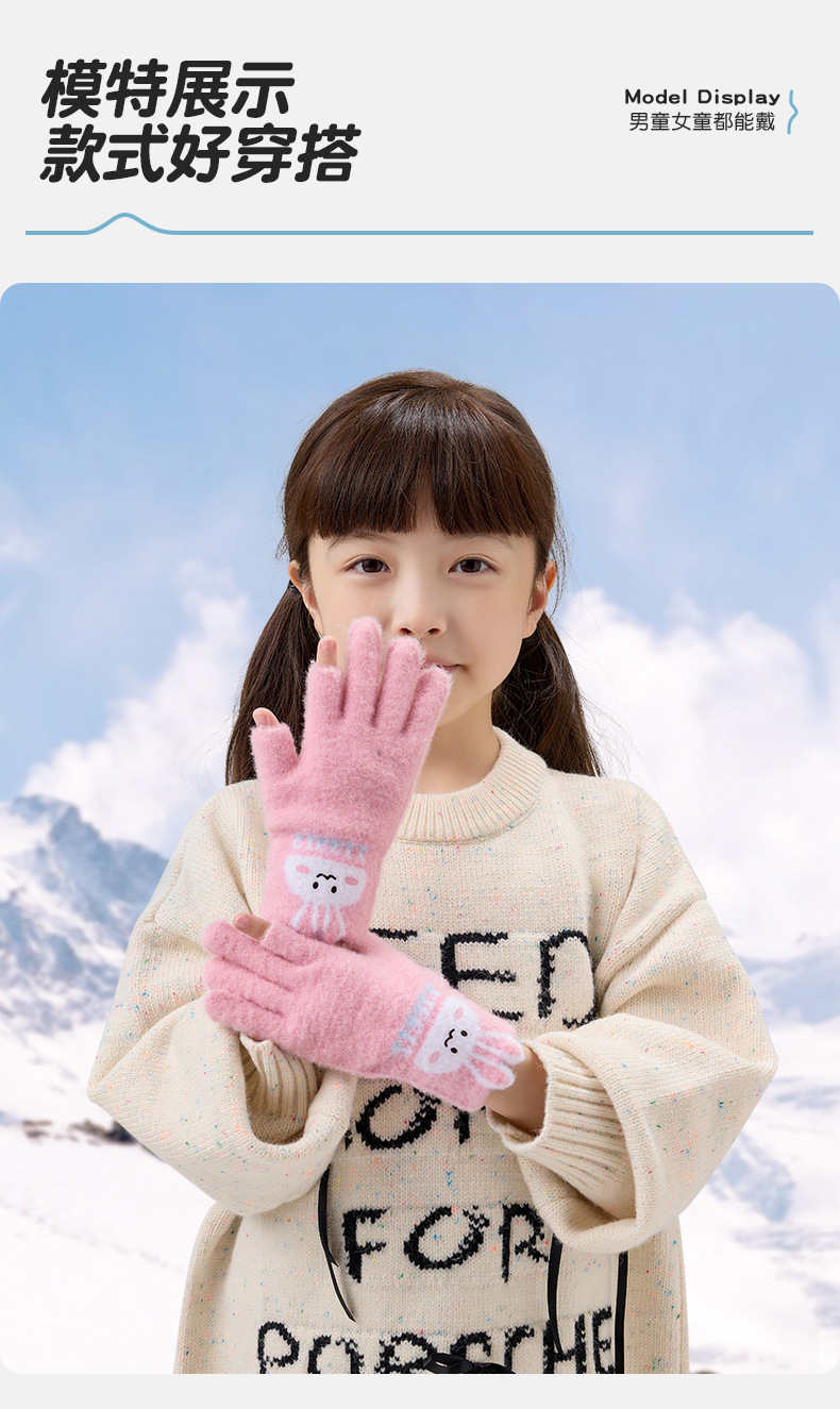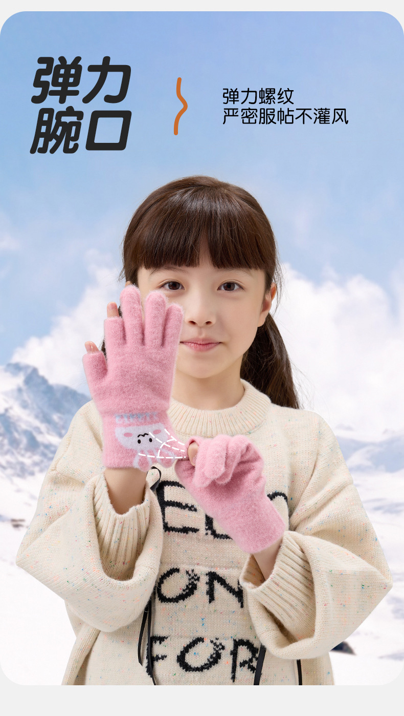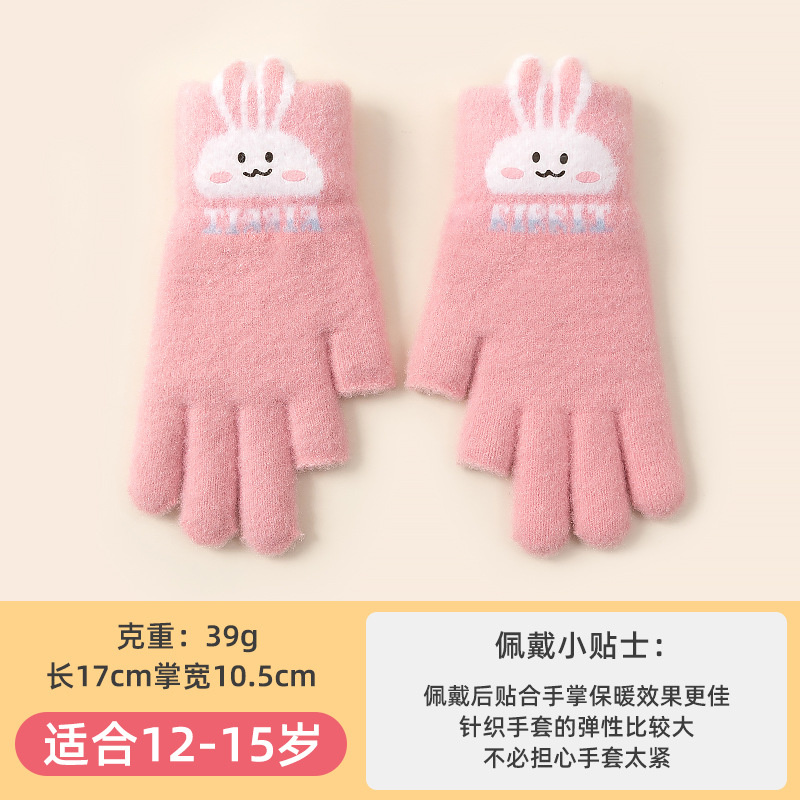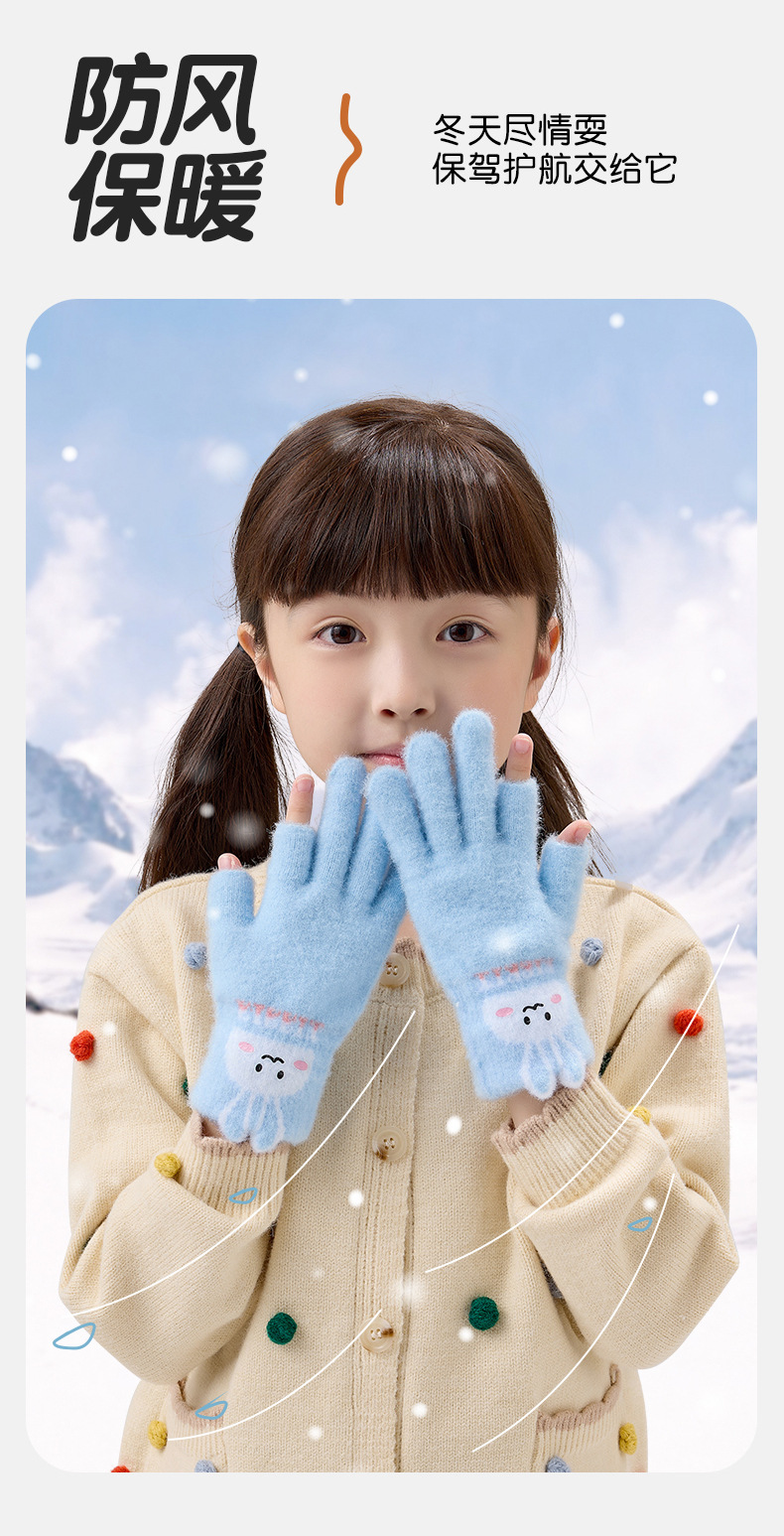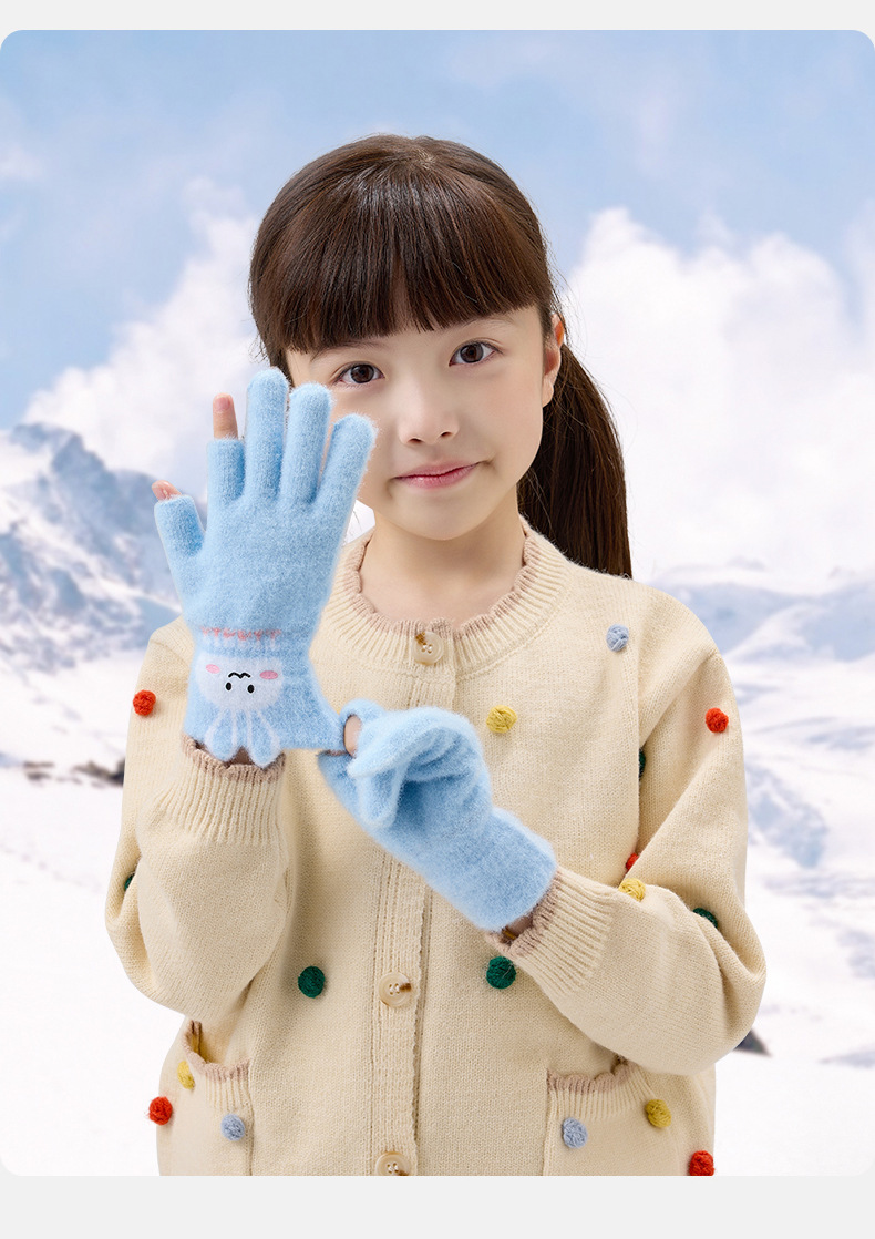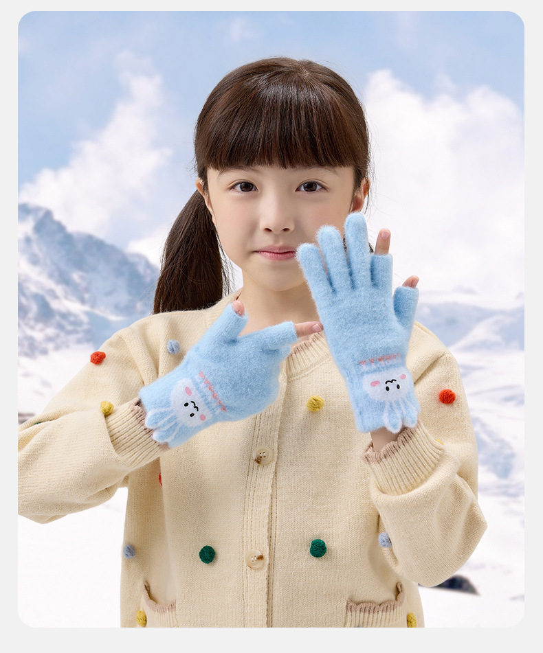어린이 장갑 겨울 초등학교 학생의 글쓰기 누출 두 손가락 두꺼운 따뜻한 니트 다섯 손가락 감기 방지 만화 장갑스토어 가기