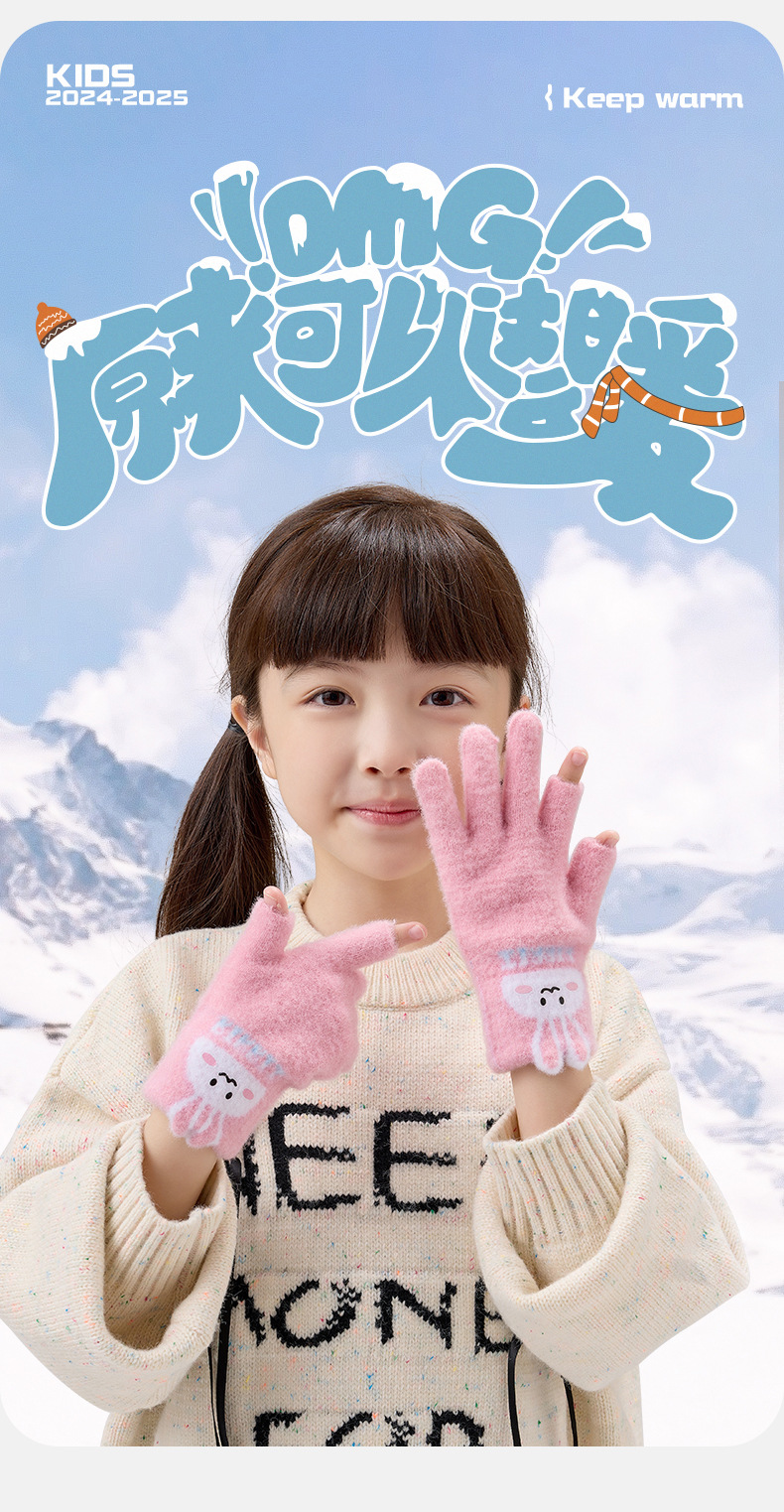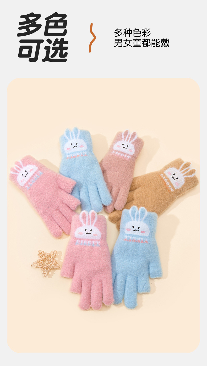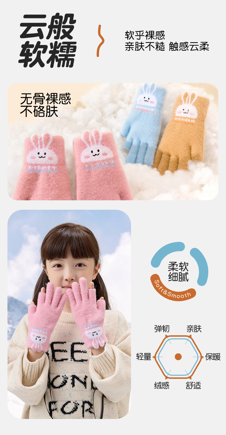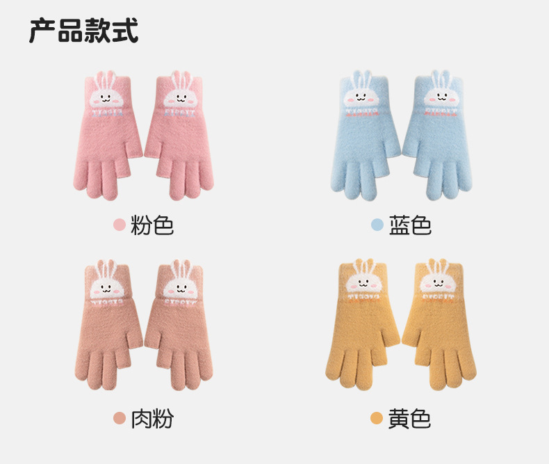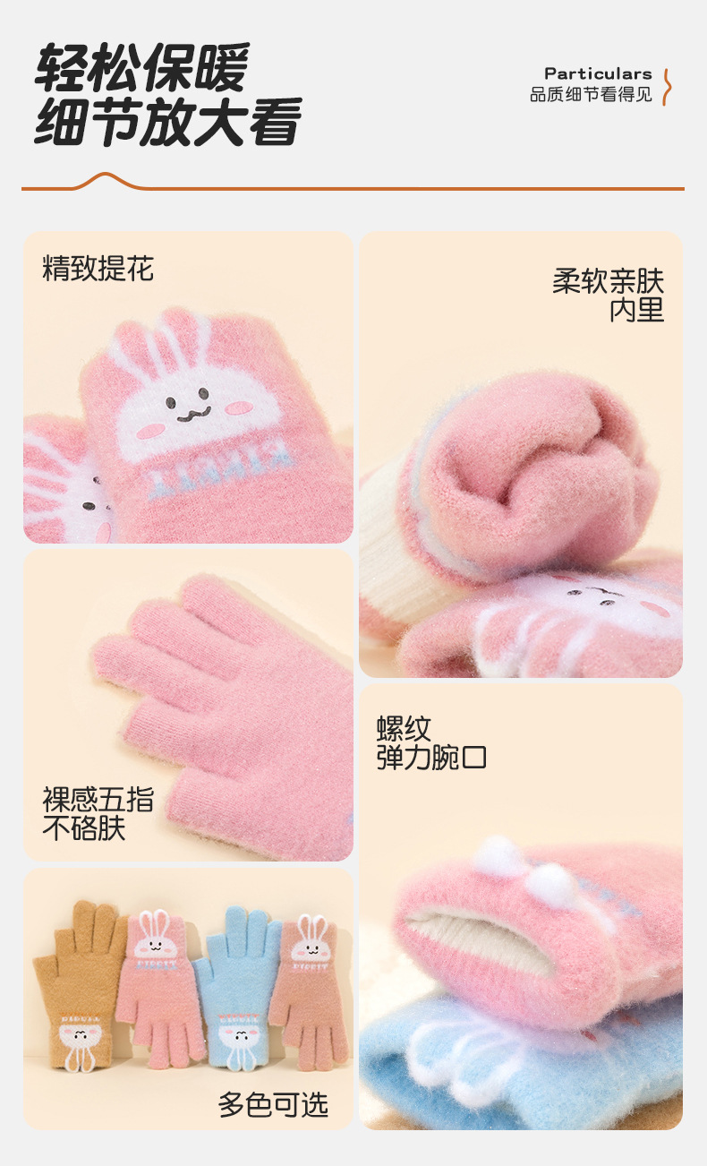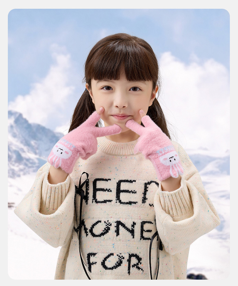 어린이 장갑 겨울 초등학교 학생의 글쓰기 누출 두 손가락 두꺼운 따뜻한 니트 다섯 손가락 감기 방지 만화 장갑스토어 가기