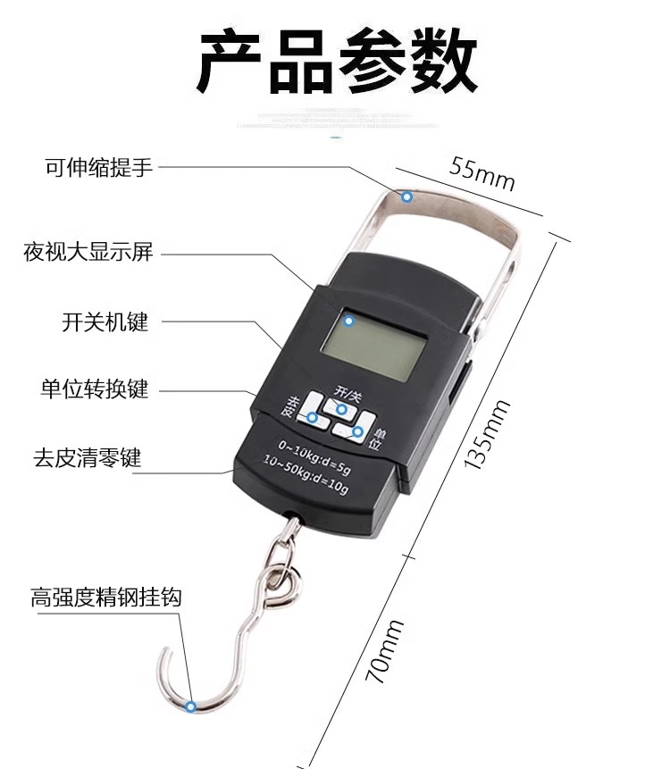 휴대용 전자 규모 고정밀 전자 저울 휴대용 가늠자 봄 가늠자 가정용 휴대용 작은 Weigher 후크