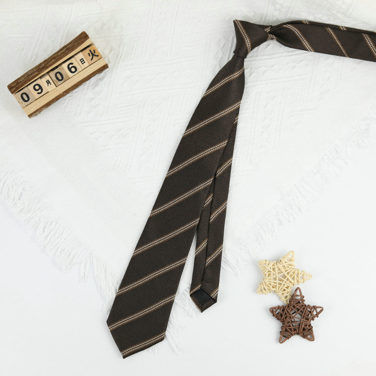 • 갈색 줄무늬 핸드 타이