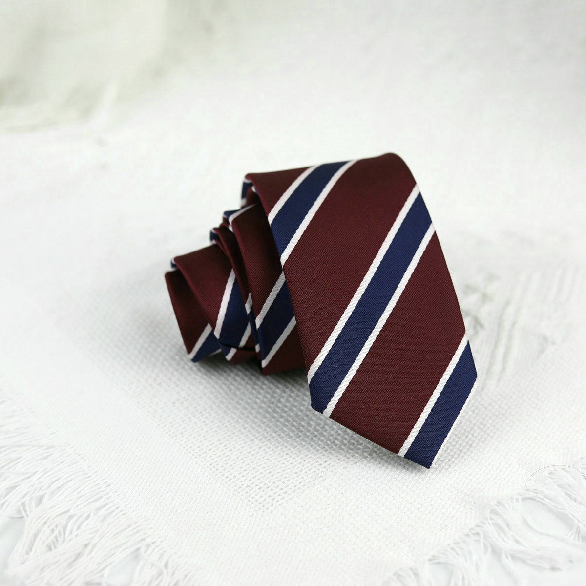 • 버건디 스트라이프 핸드 타이