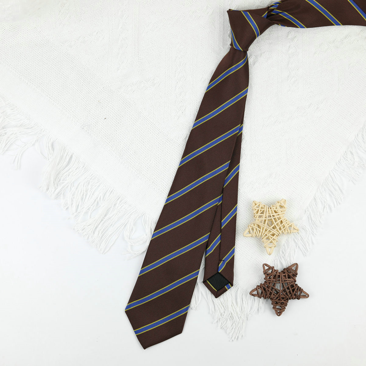 • 갈색 파란색 줄무늬 손 넥타이