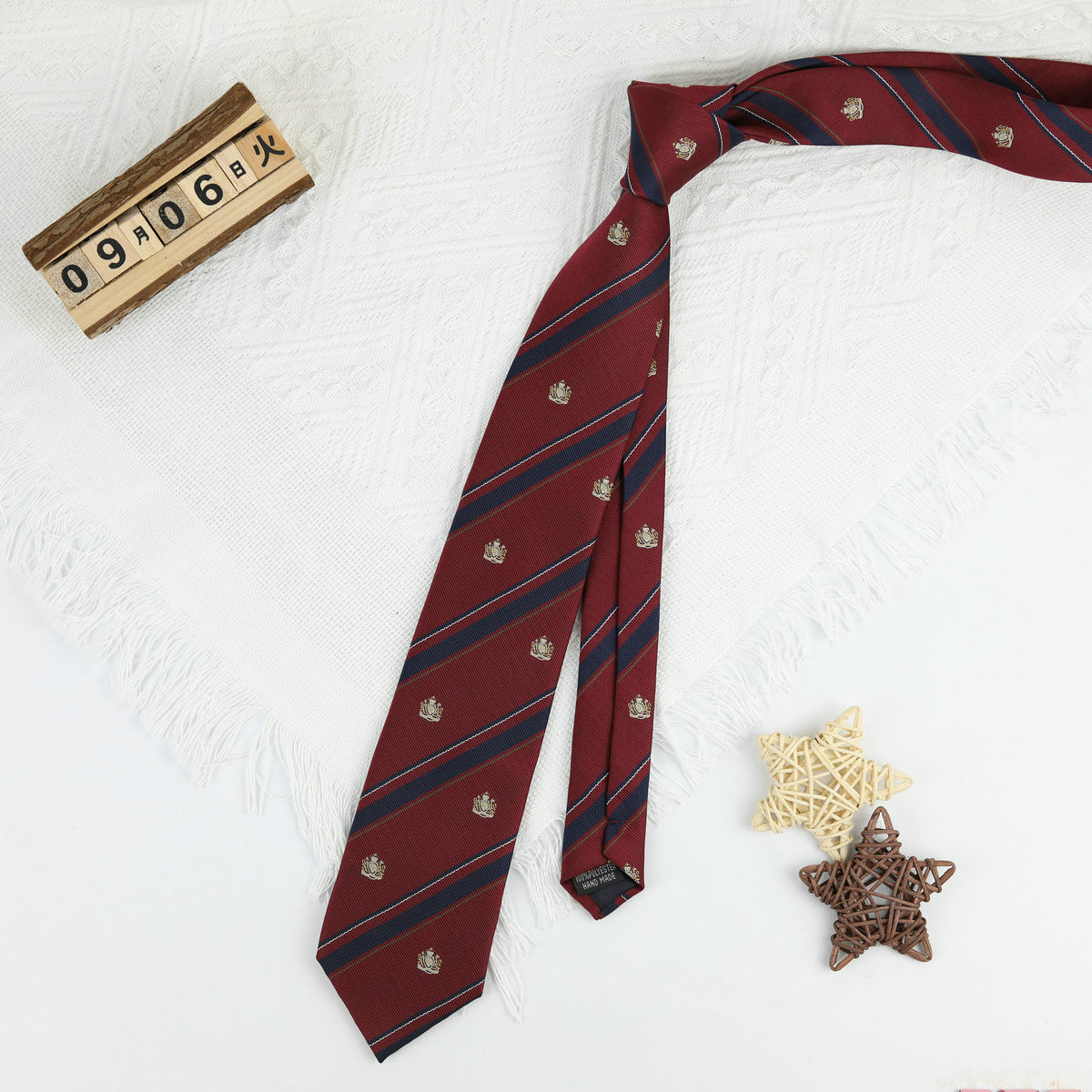 • 작은 왕관 버건디 핸드 타이
