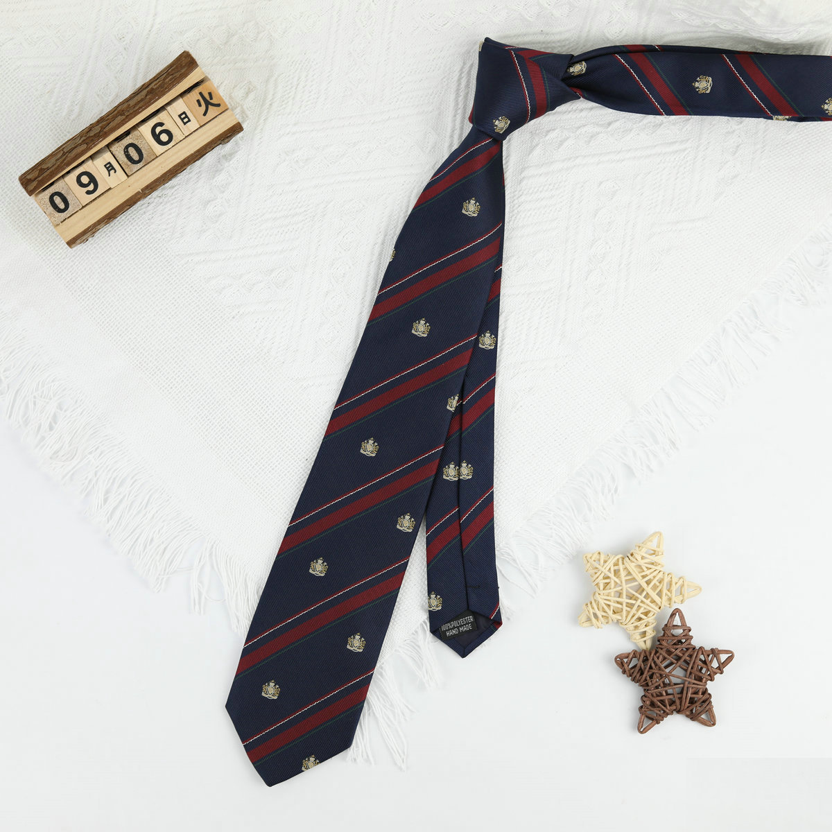 • 작은 왕관 파란색과 빨간색 손으로 묶인 넥타이
