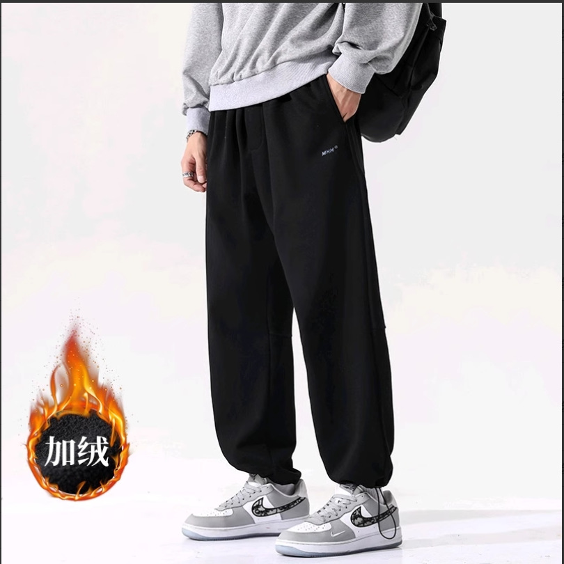 William March Drawstring 스포츠 남자 Draping 바지 겨울 느슨한 캐주얼 스트레이트 바지 남자 패션