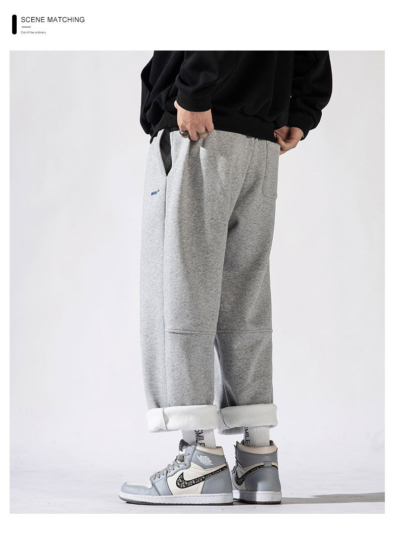 William March Drawstring 스포츠 남자 Draping 바지 겨울 느슨한 캐주얼 스트레이트 바지 남자 패션스토어 가기