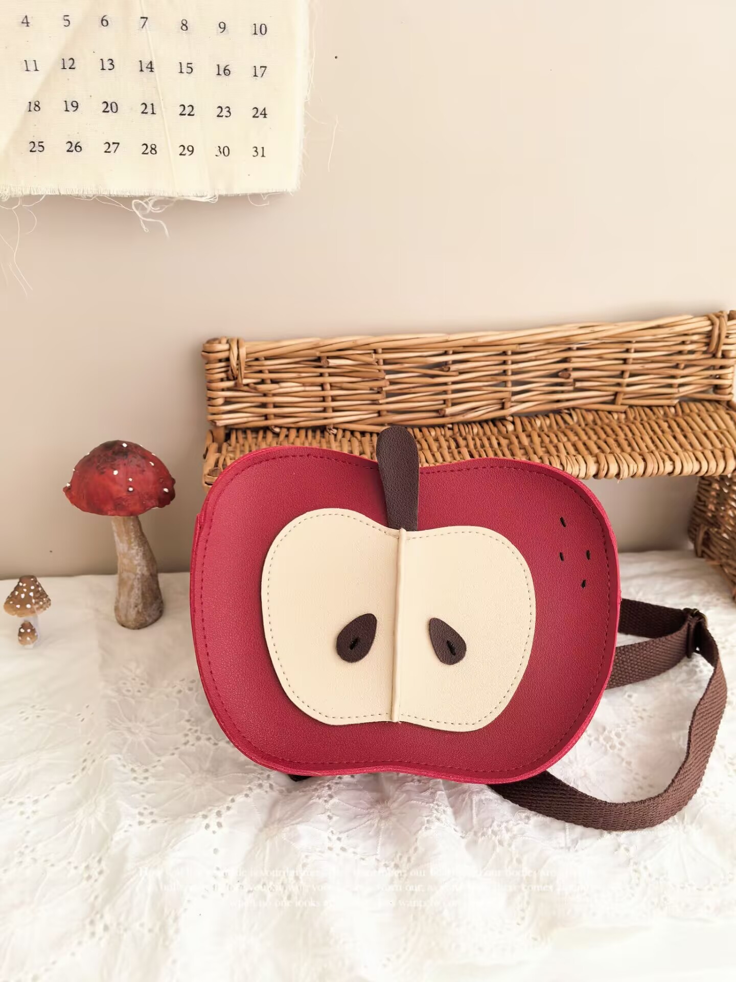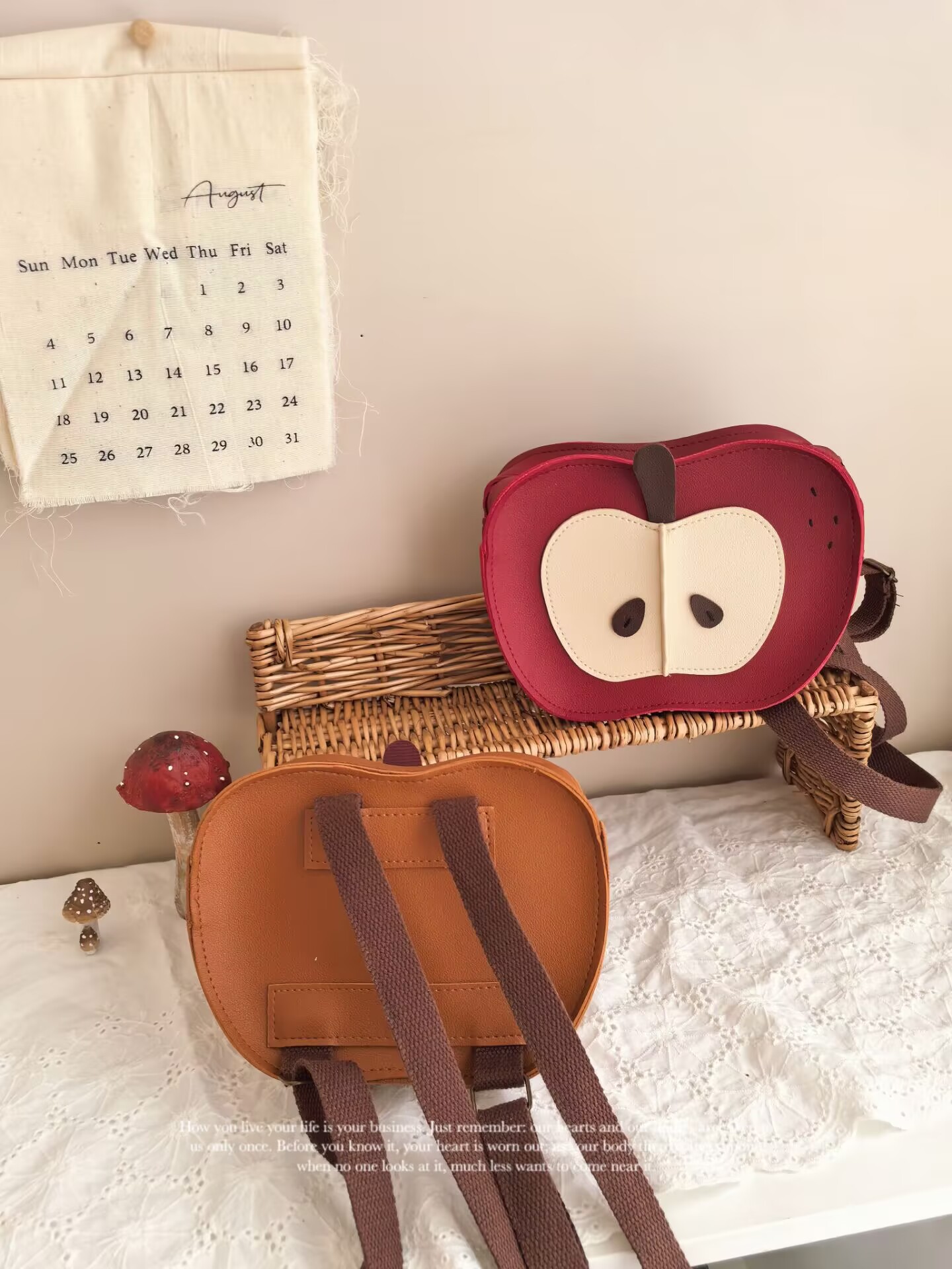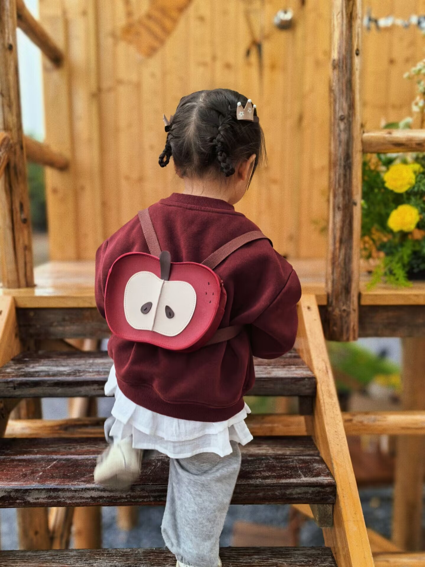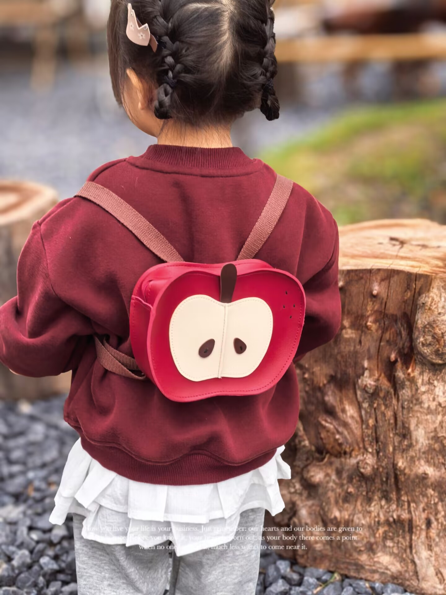 원래 디자인 새로운 어린이 귀여운 과일 사과 PU 가죽 작은 배낭 소년과 소녀 아기 배낭 도매