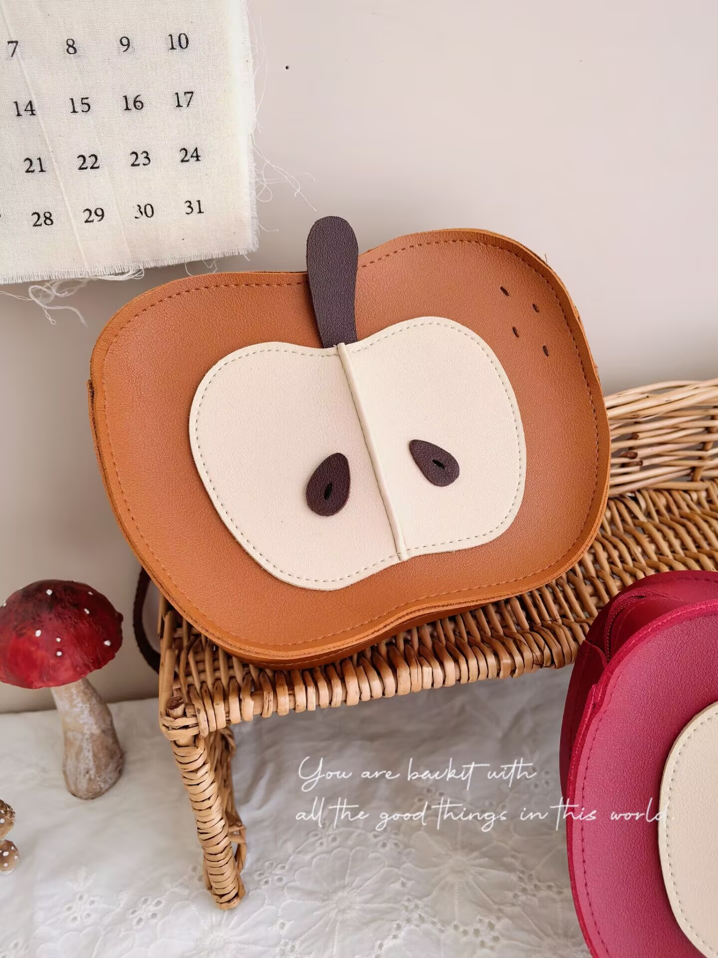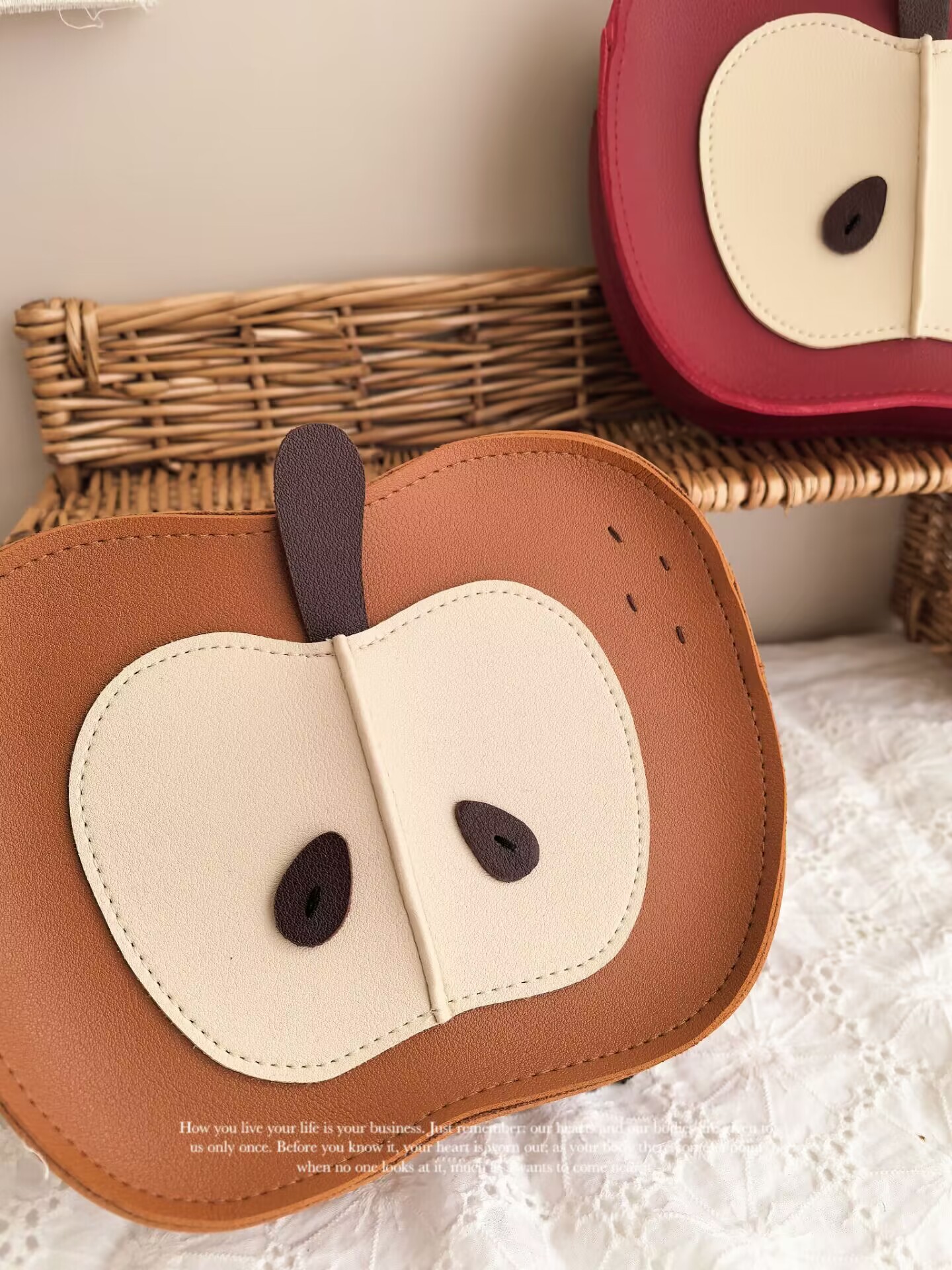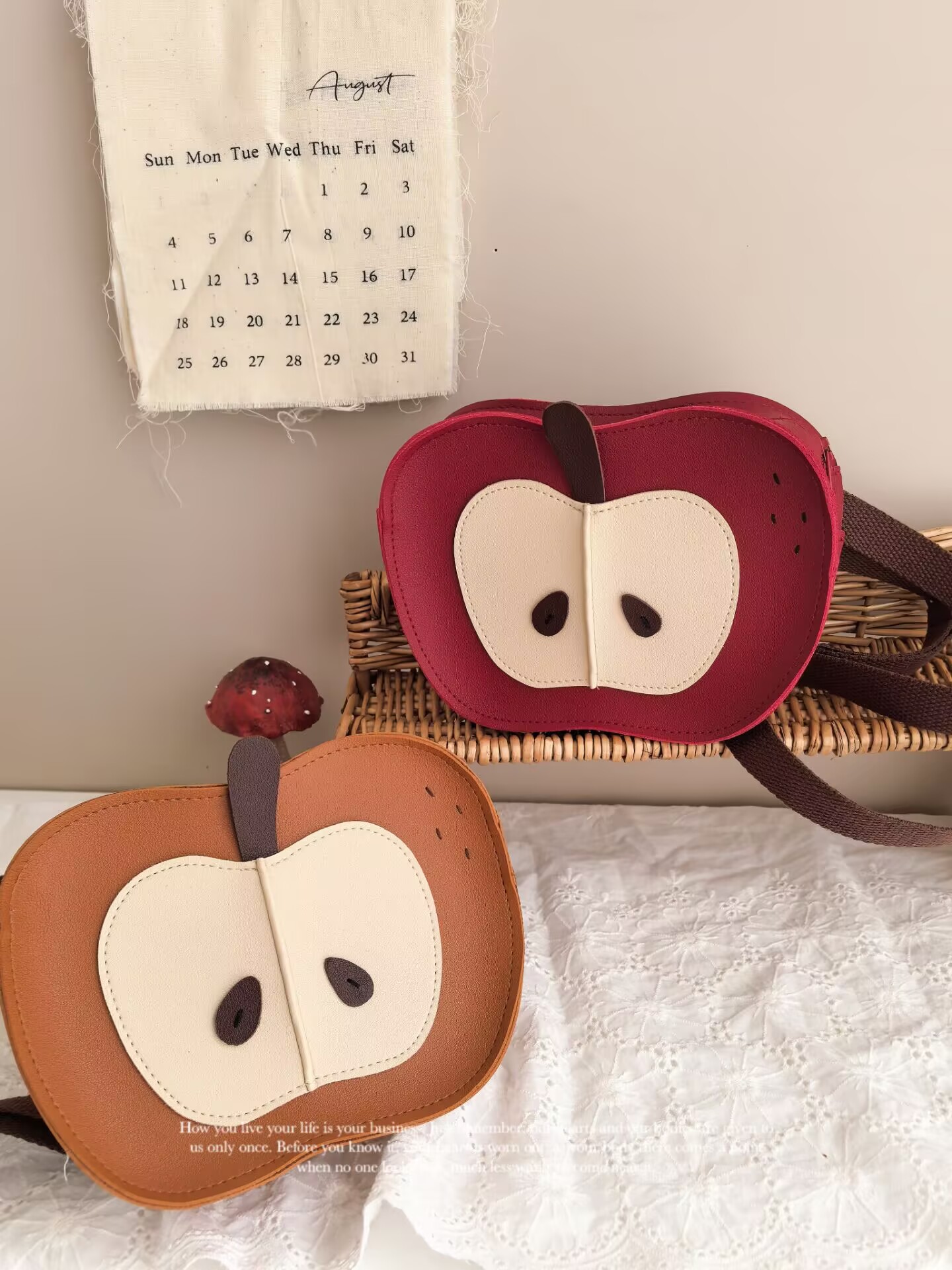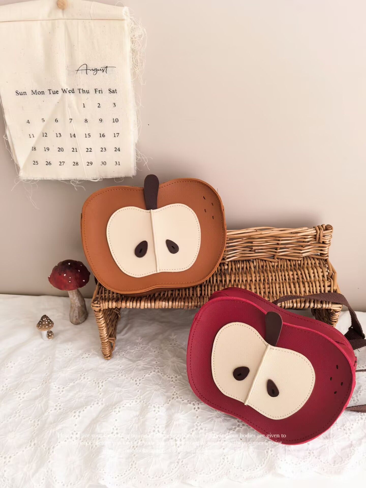 원래 디자인 새로운 어린이 귀여운 과일 사과 PU 가죽 작은 배낭 소년과 소녀 아기 배낭 도매