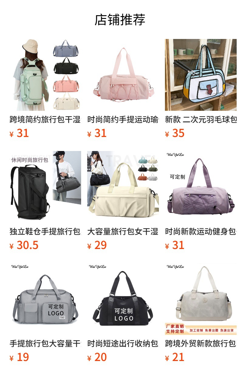 대용량 경량 여행 가방 건조하고 젖은 분리 단거리 수하물 가방 남녀 스포츠 요가 피트니스 가방스토어 가기