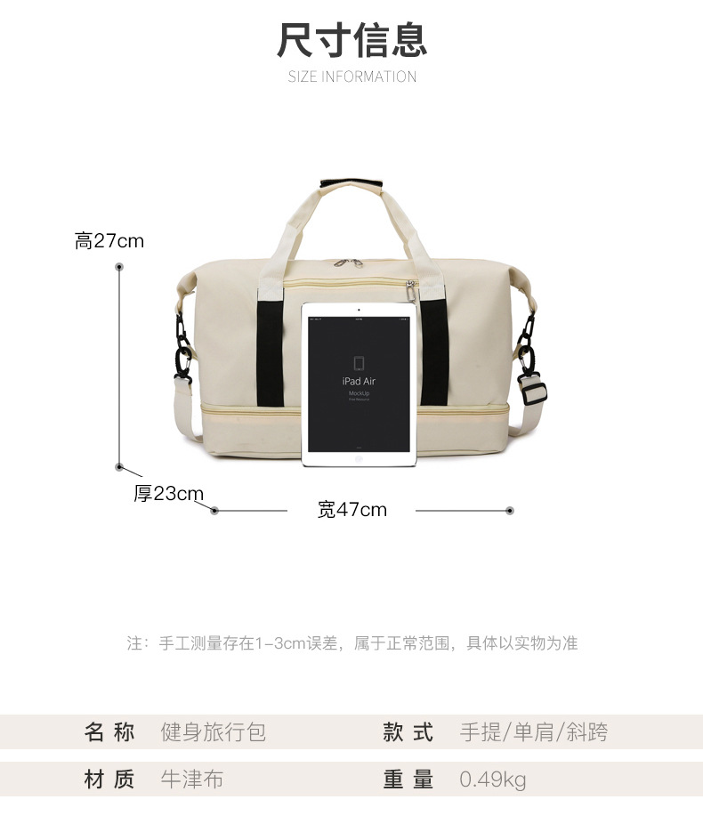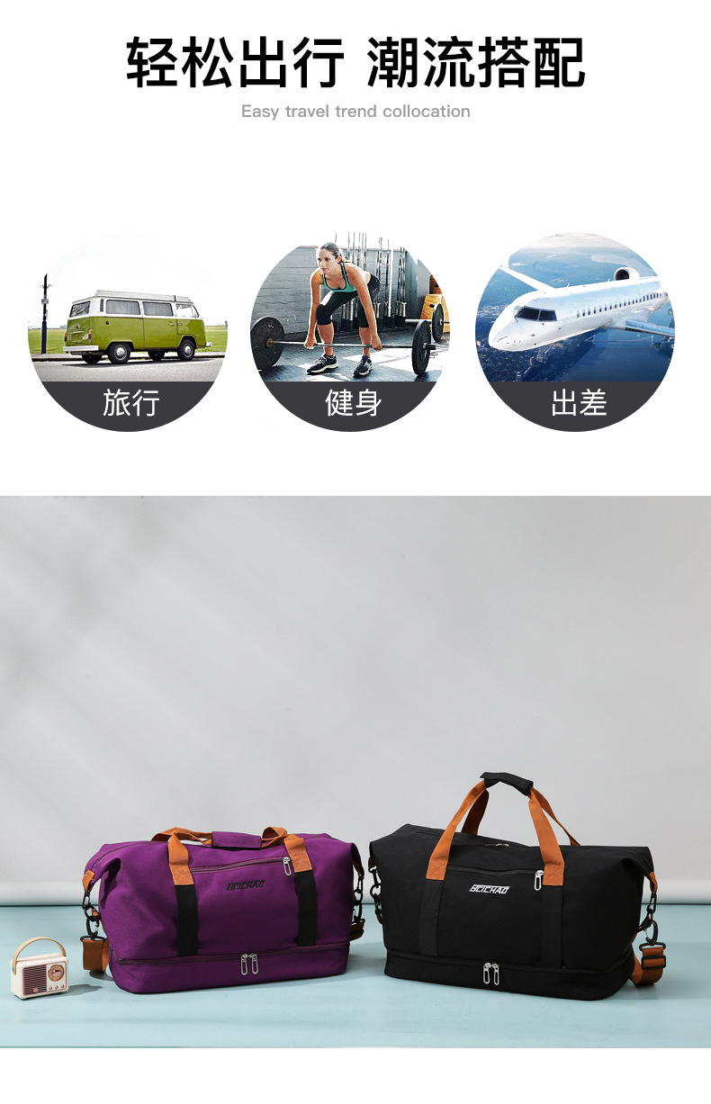 대용량 경량 여행 가방 건조하고 젖은 분리 단거리 수하물 가방 남녀 스포츠 요가 피트니스 가방