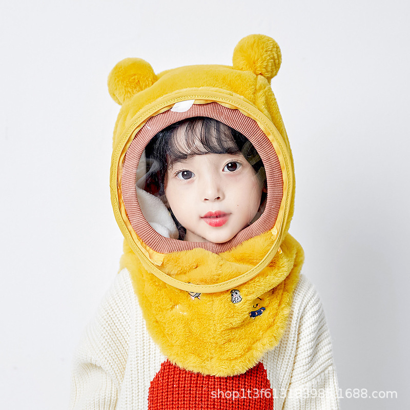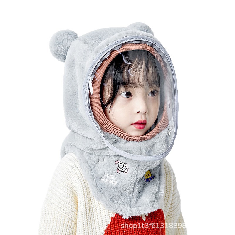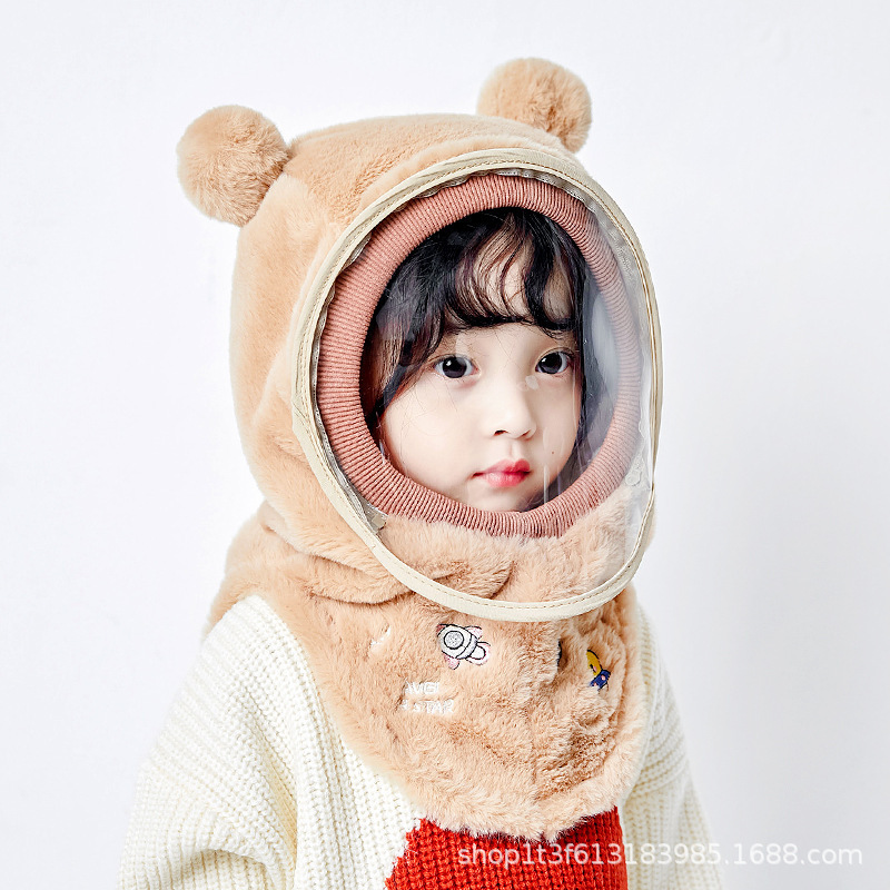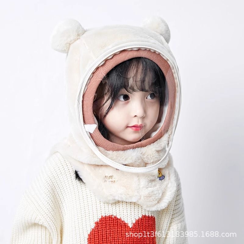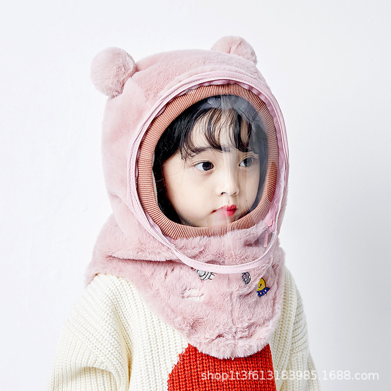 아기 모자 겨울 소년과 소녀 모자 스카프 통합 캡 방풍 보호 마스크 귀마개 머리 솜털 모자