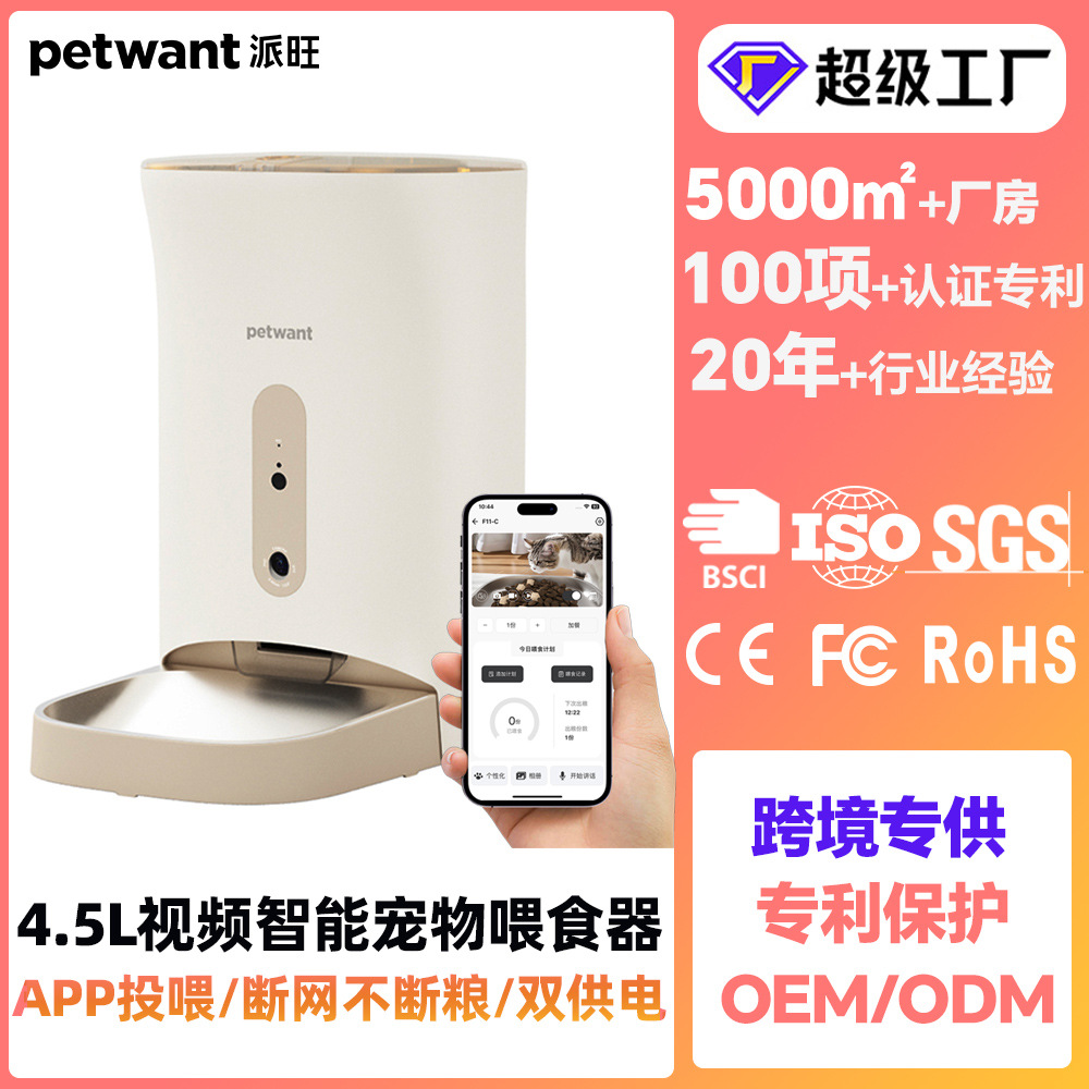 국경 간 petwant 스마트 애완 동물 피더 듀얼 와이파이 카메라 APP 원격 자동 공급 기계