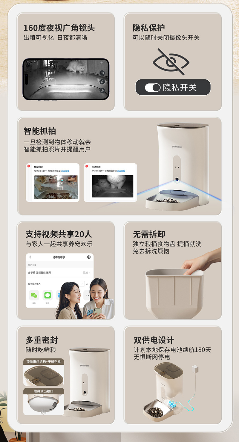 국경 간 petwant 스마트 애완 동물 피더 듀얼 와이파이 카메라 APP 원격 자동 공급 기계스토어 가기