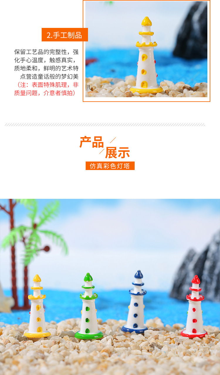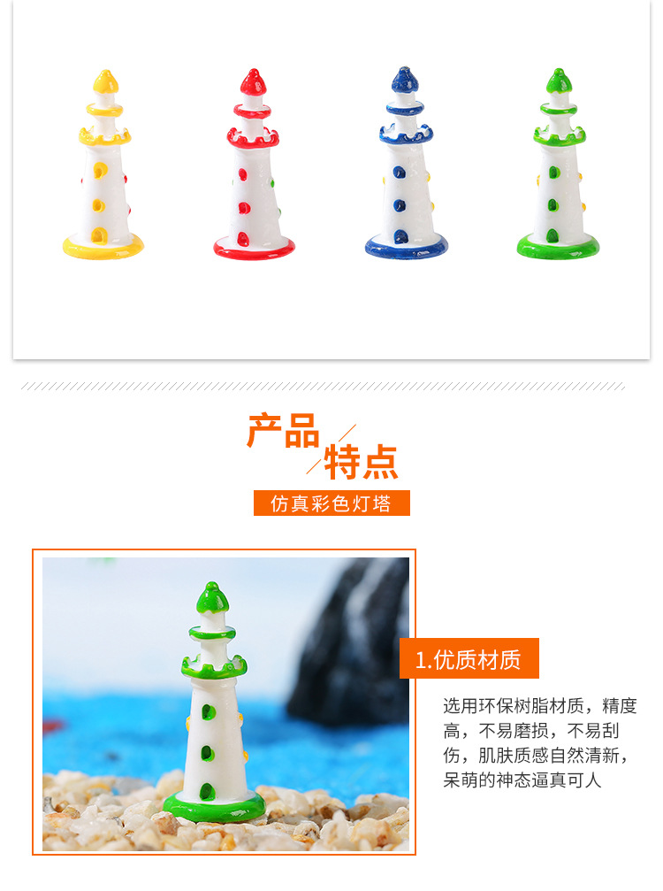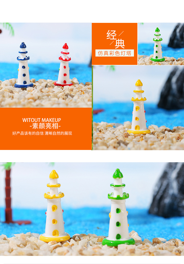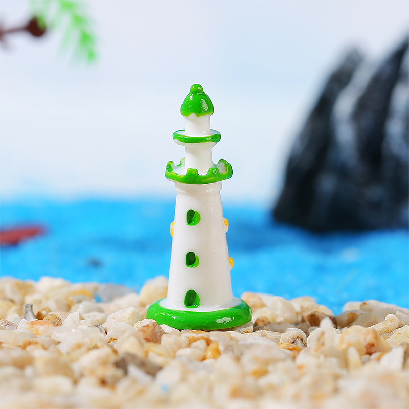 마이크로 조경 수지 작은 장식품 지중해 스타일 색상 등대 수족관 물고기 탱크 장식 공예 장식품 도매
