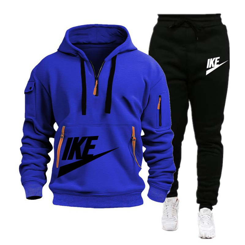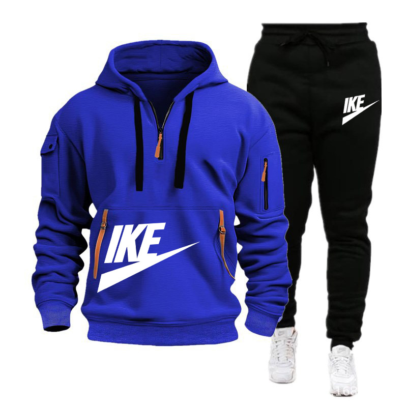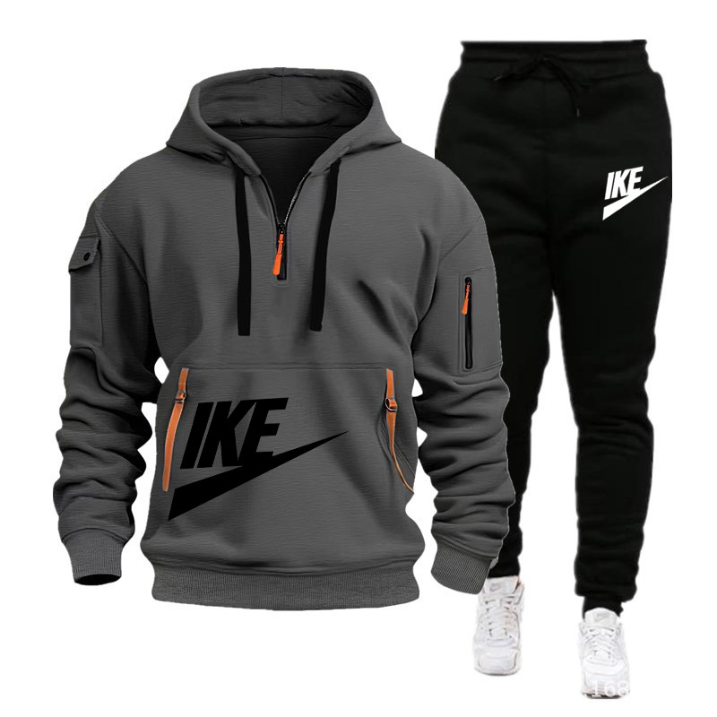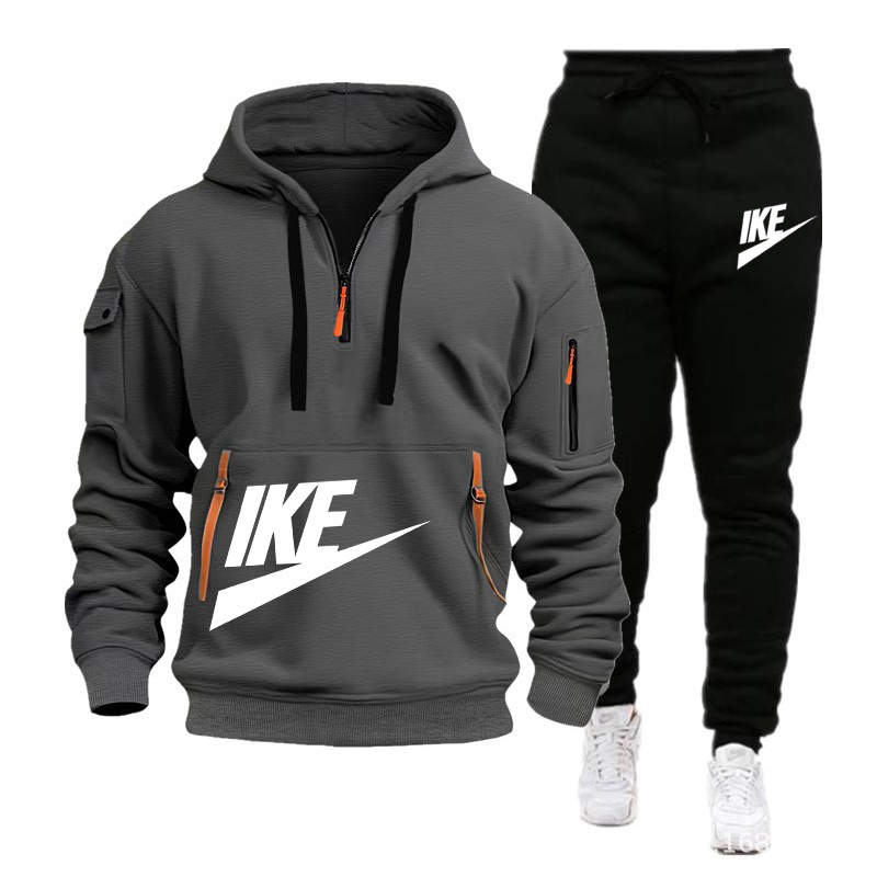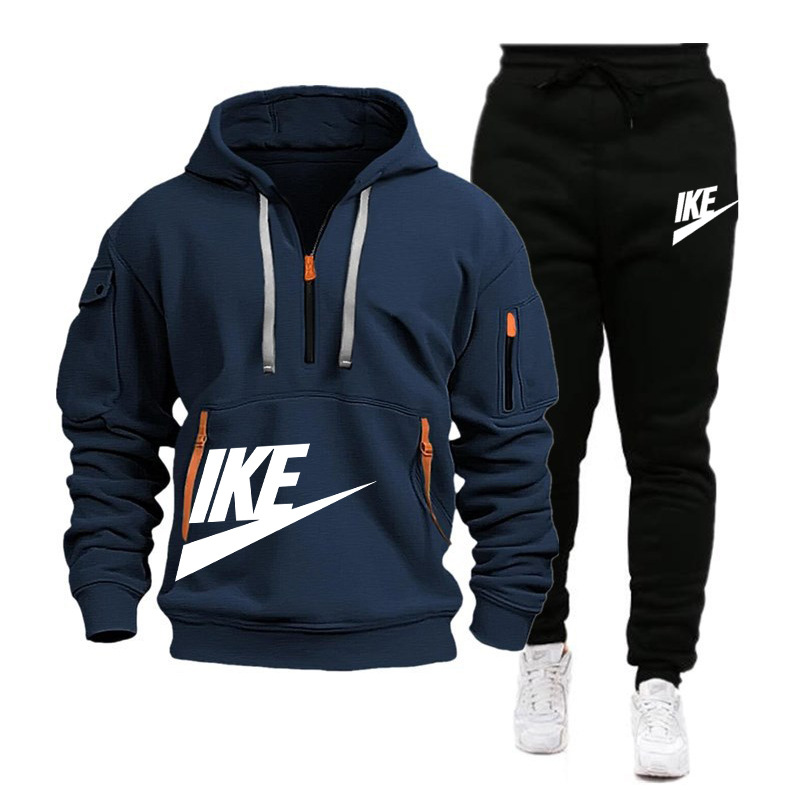 2024 국경 봄과 가을 스포츠 세트 남성 지퍼 후드 운동복 인쇄 패션 세트 스웨터 바지