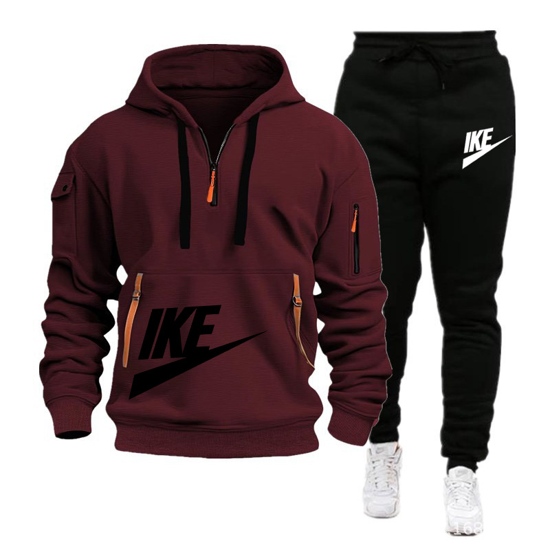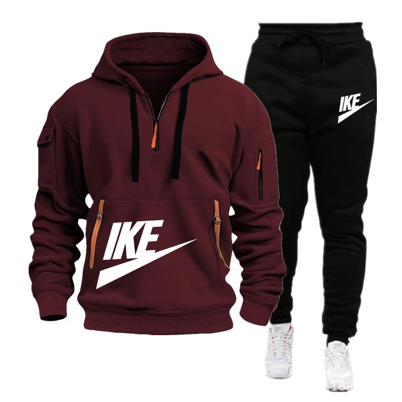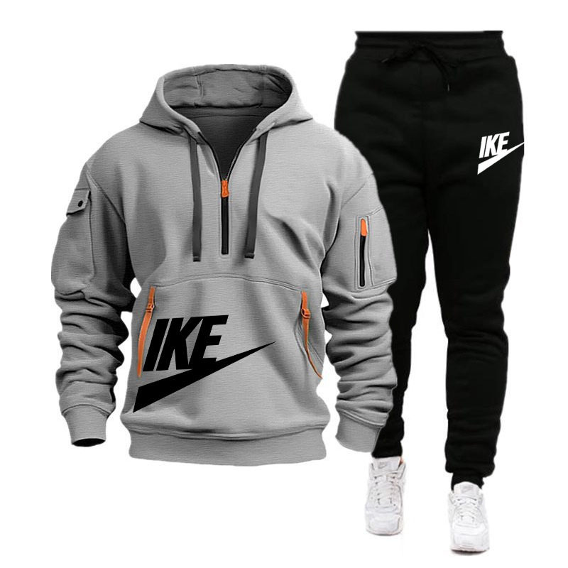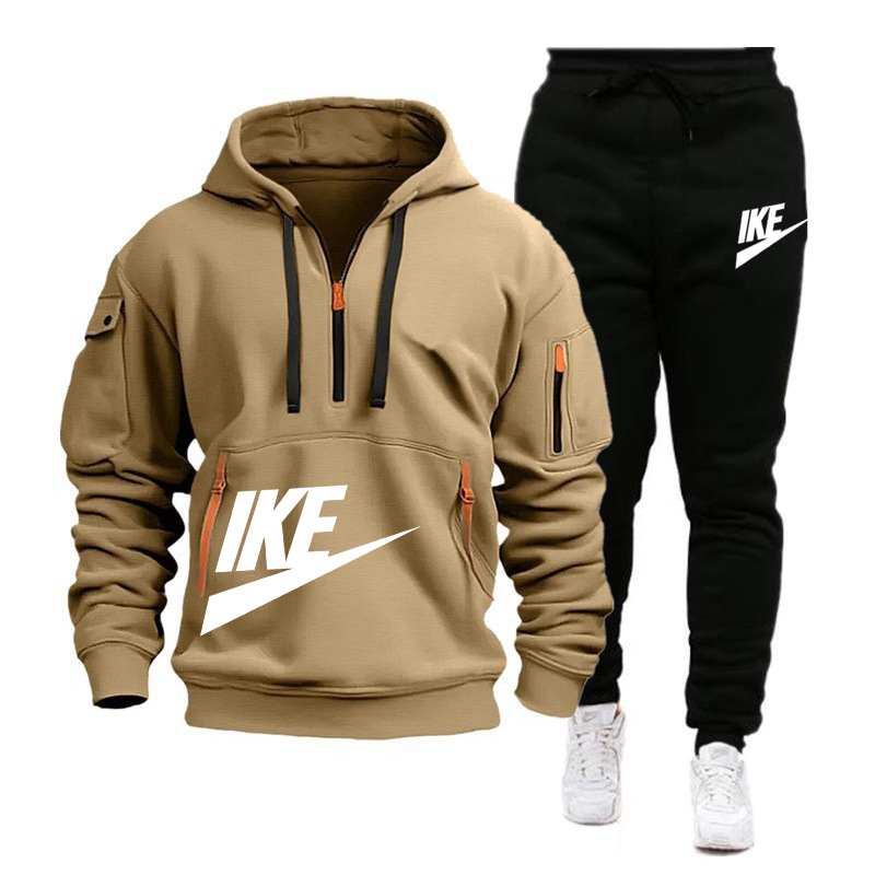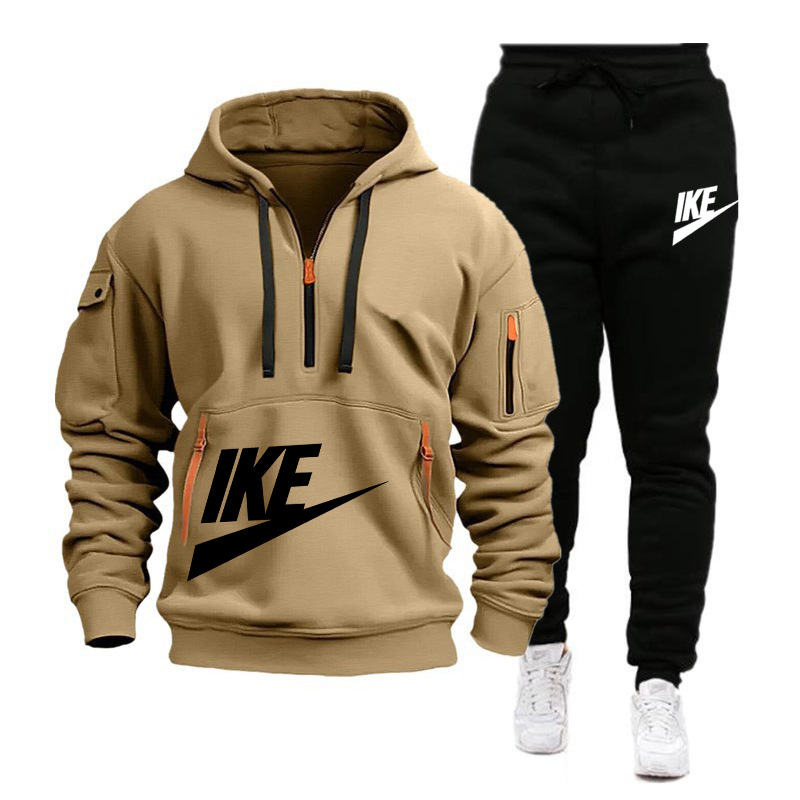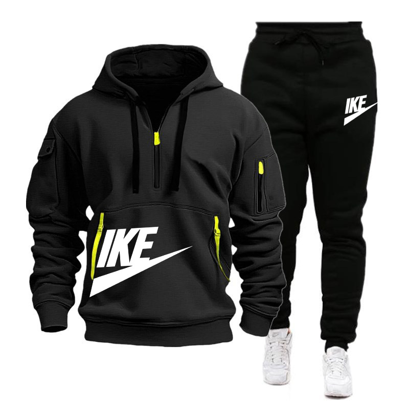 2024 국경 봄과 가을 스포츠 세트 남성 지퍼 후드 운동복 인쇄 패션 세트 스웨터 바지
