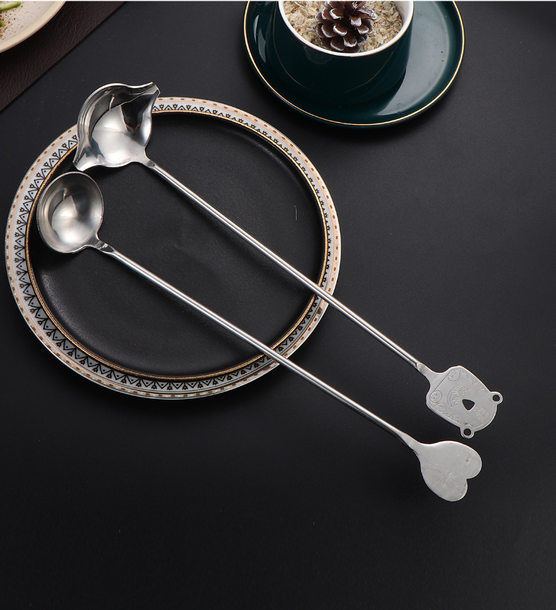 스테인레스 스틸 긴 손잡이 가정용 주방 혼합 숟가락 커피 스푼 냄비 조미료 숟가락 다기능 필터 스푼 오일 필터 스푼
