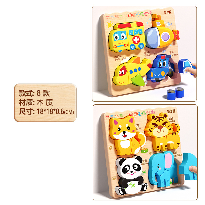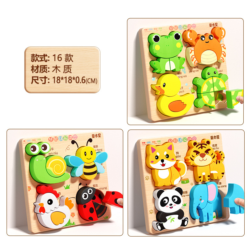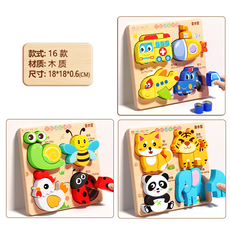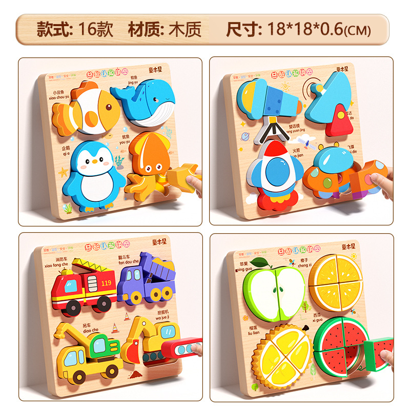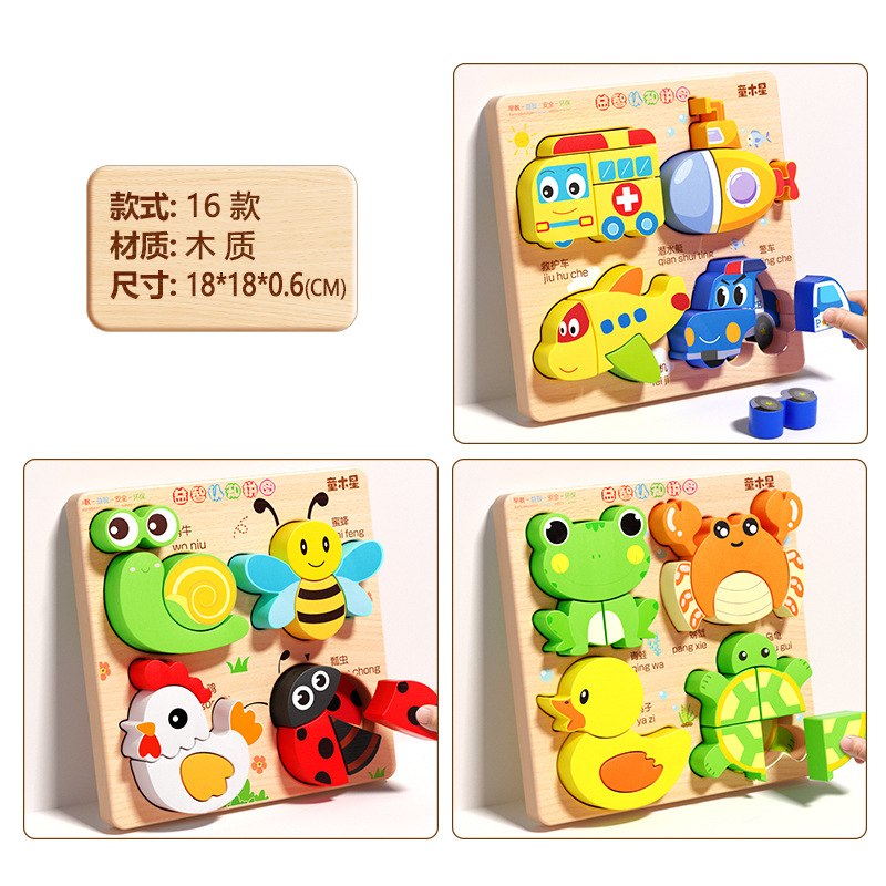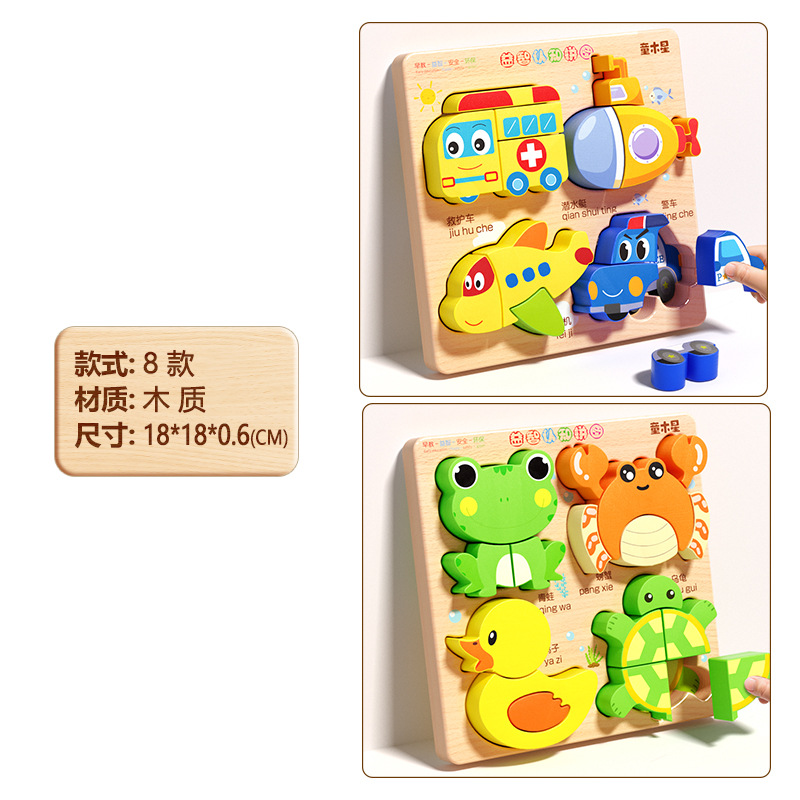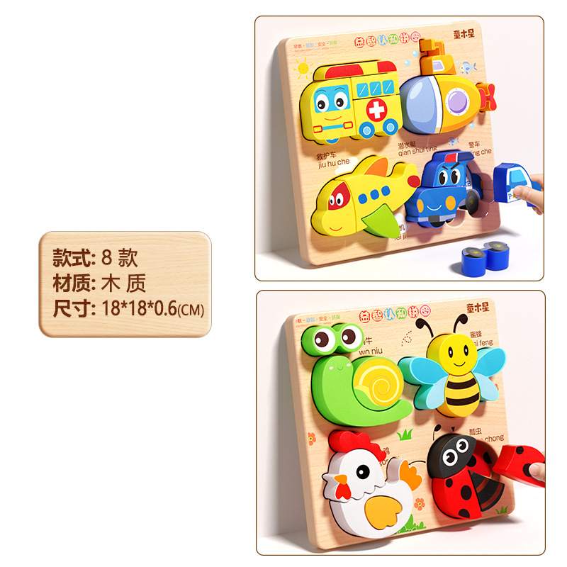 입체 퍼즐판 나무 몬테소리 조기교육 교육용 퍼즐 매칭 블록 1~2세 3세 남아 여아 6세 장난감 조립