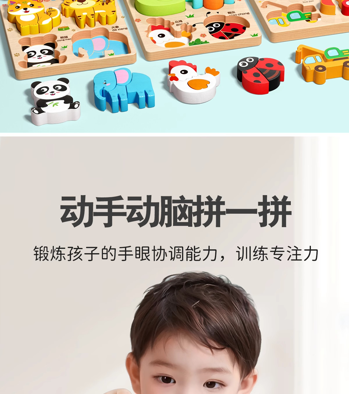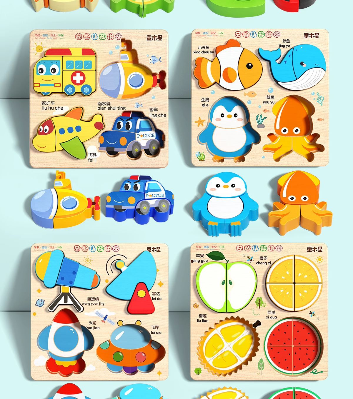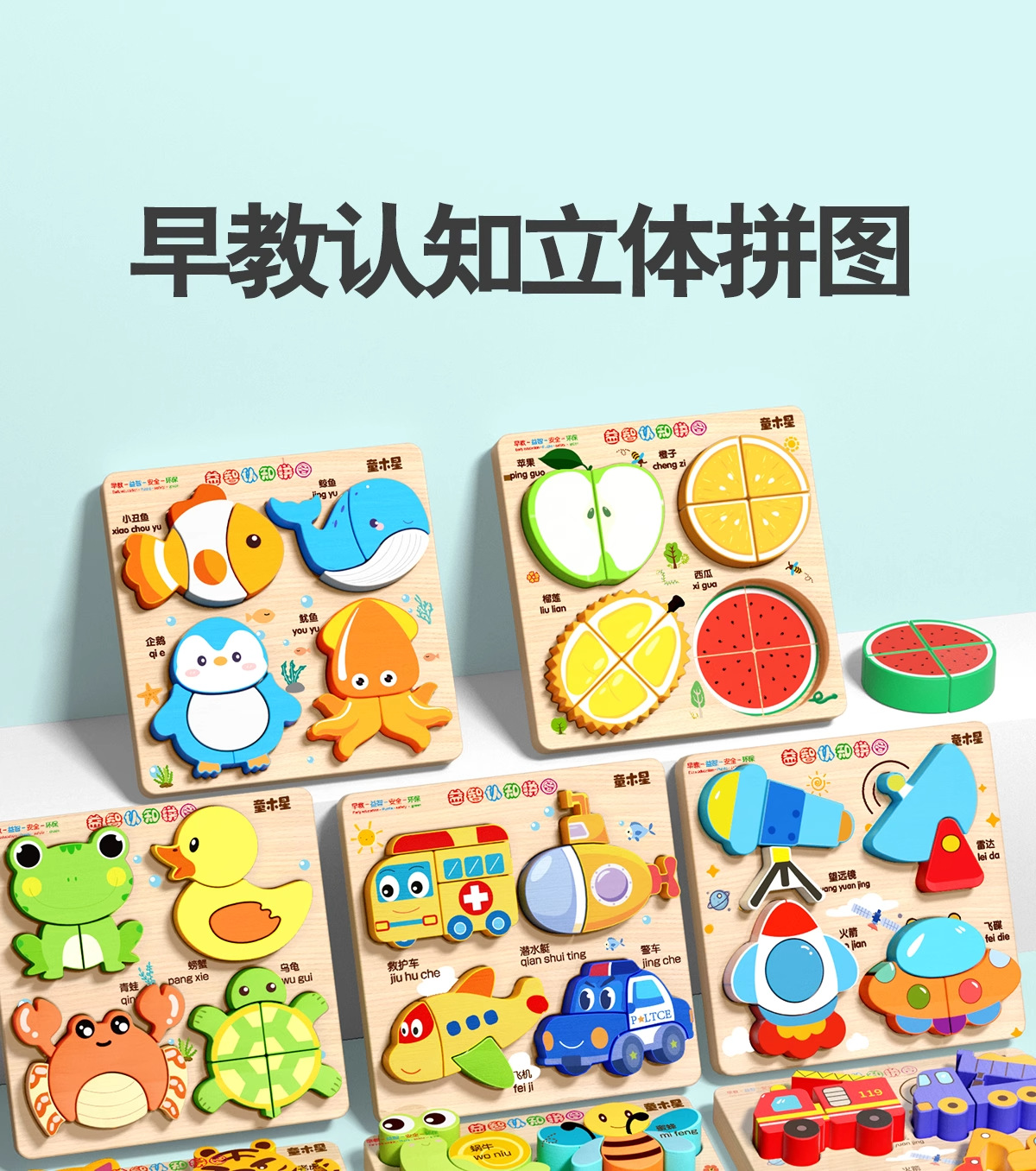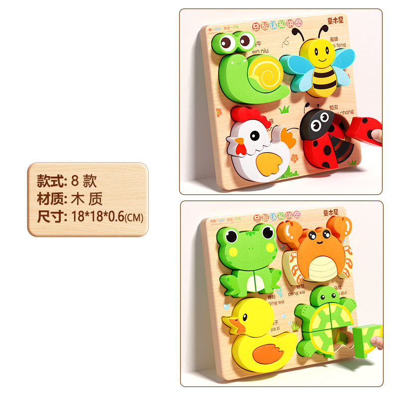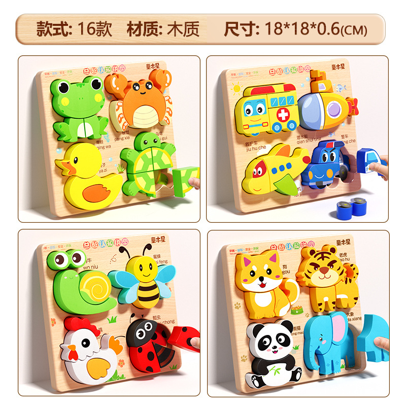입체 퍼즐판 나무 몬테소리 조기교육 교육용 퍼즐 매칭 블록 1~2세 3세 남아 여아 6세 장난감 조립