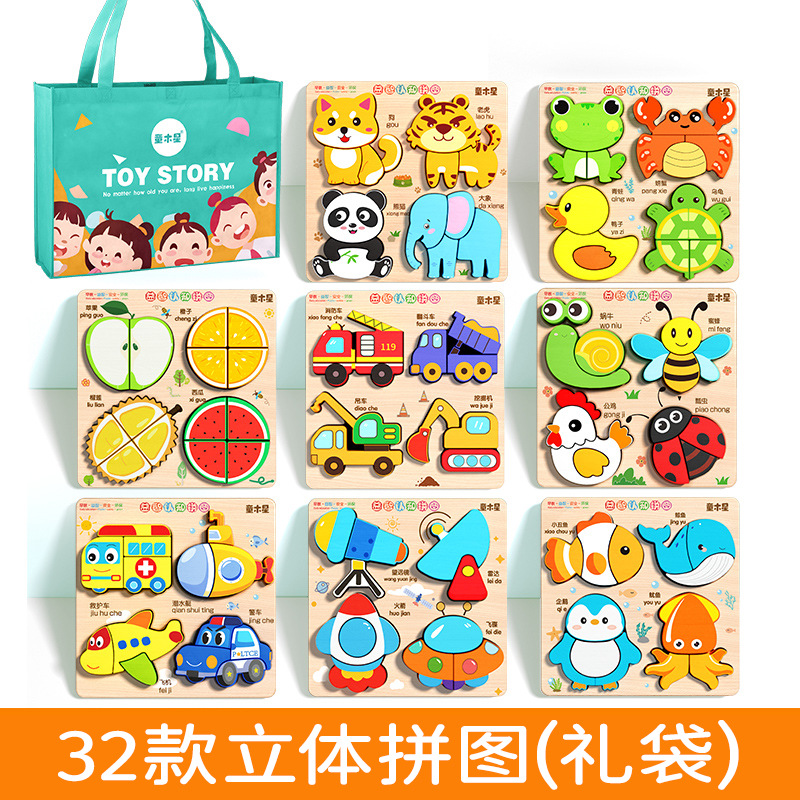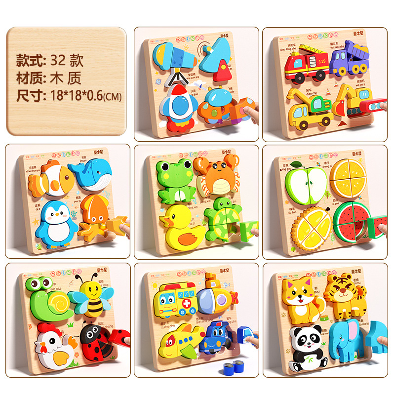 입체 퍼즐판 나무 몬테소리 조기교육 교육용 퍼즐 매칭 블록 1~2세 3세 남아 여아 6세 장난감 조립스토어 가기