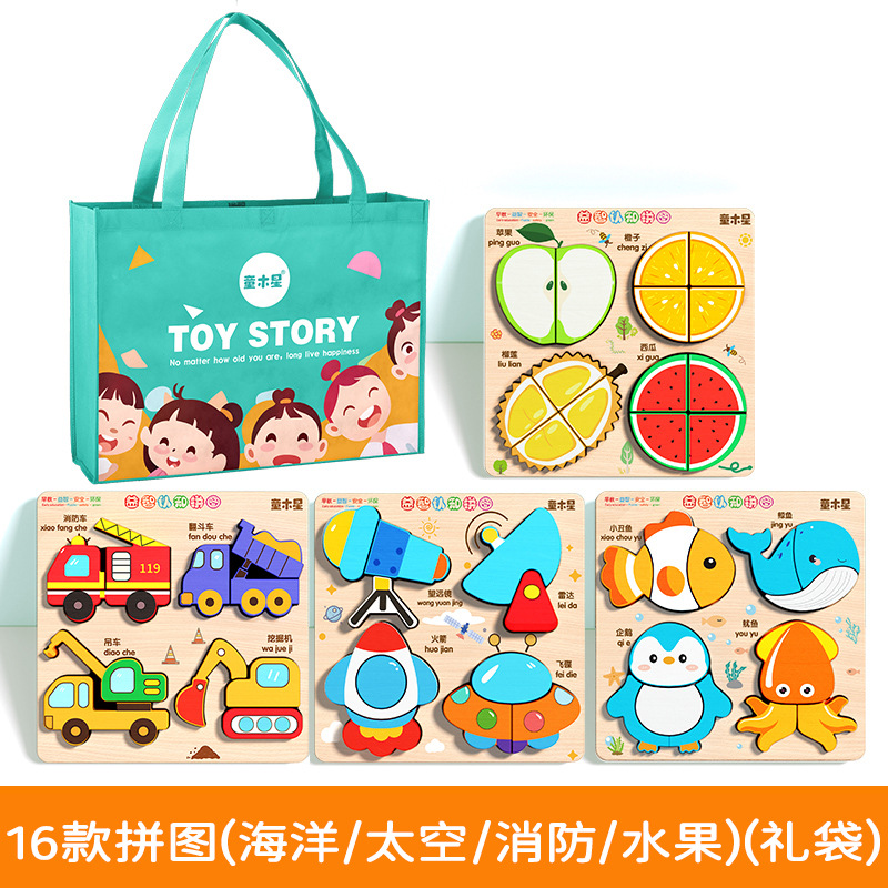 • [선물가방] 퍼즐 16종 [바다세트 + 우주세트 + 소방차세트 + 과일세트]