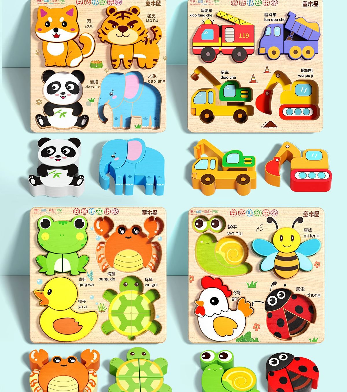 • 동물 퍼즐 4종 C형 [달팽이+벌+병아리+무당벌레]