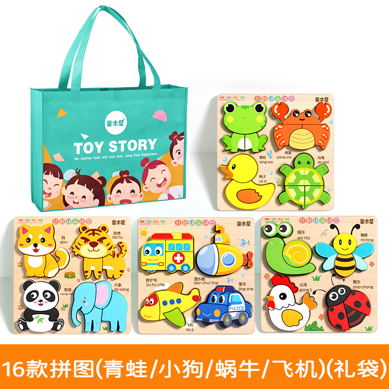 • [선물가방] 퍼즐 16종 [개구리 세트 + 강아지 세트 + 달팽이 세트 + 비행기 커버]