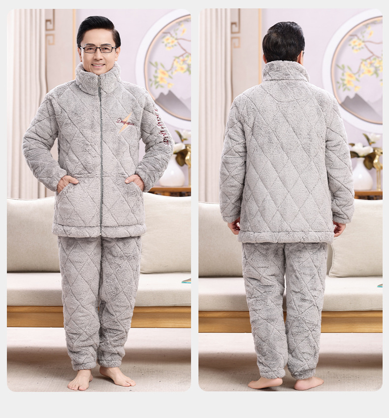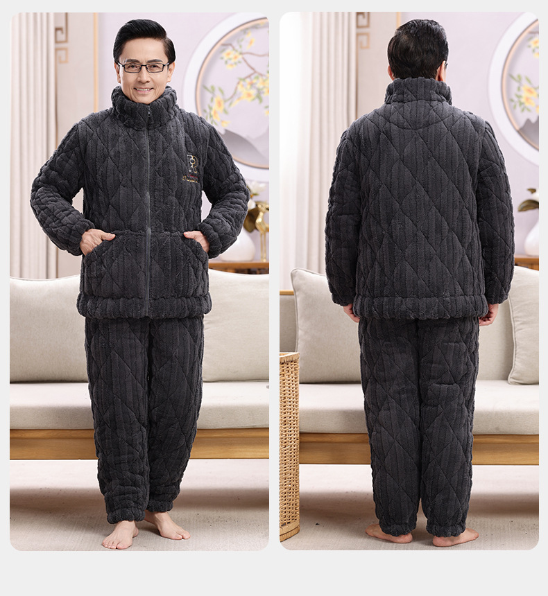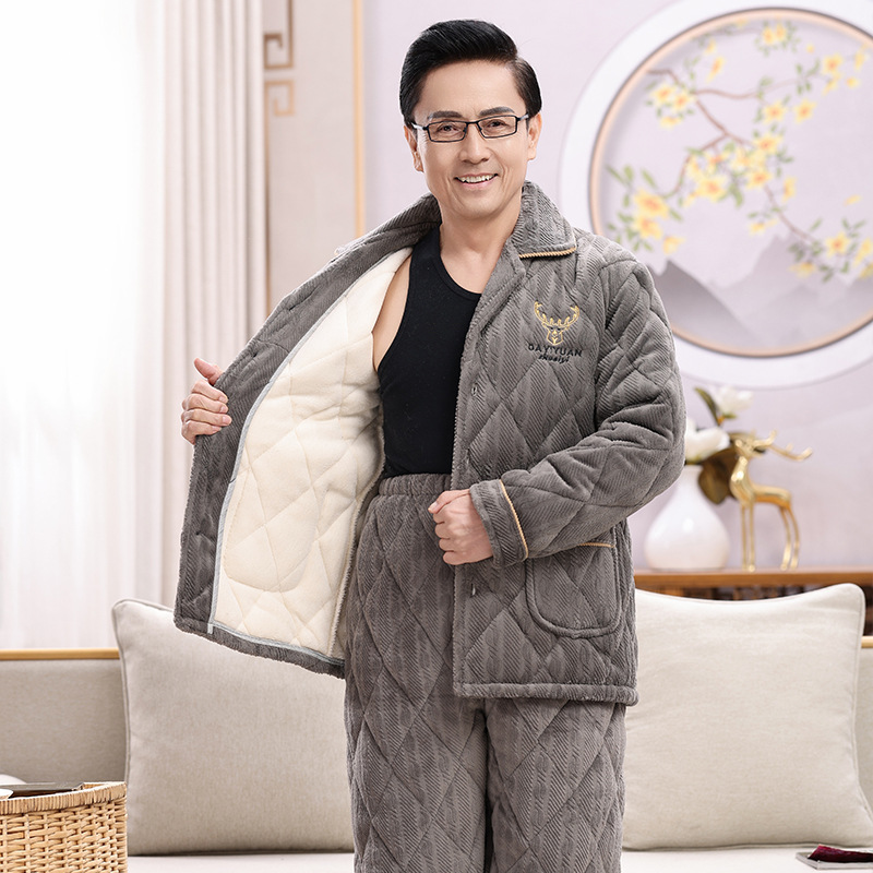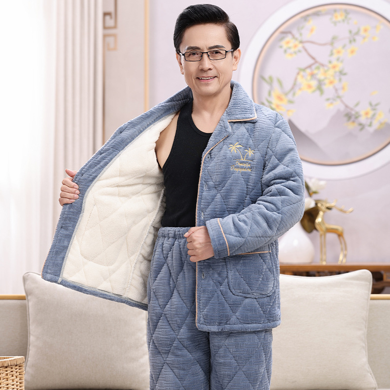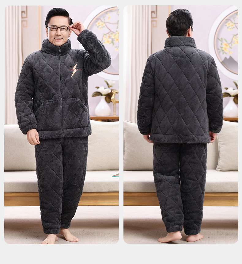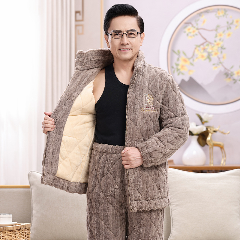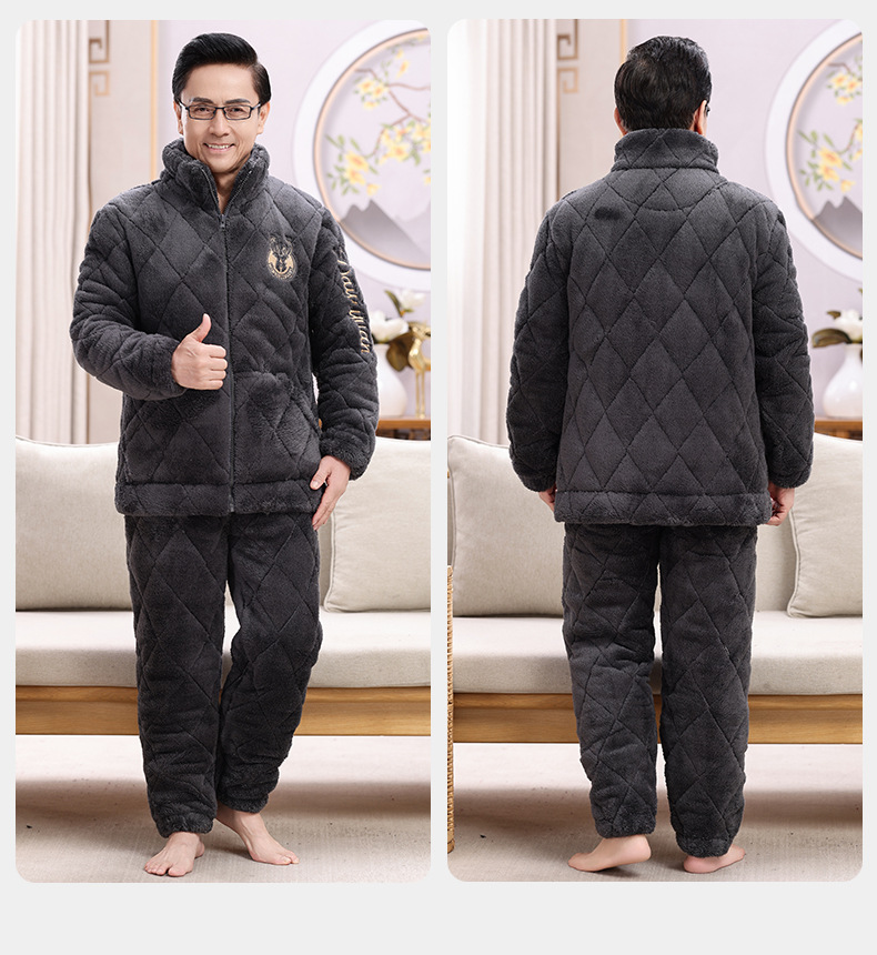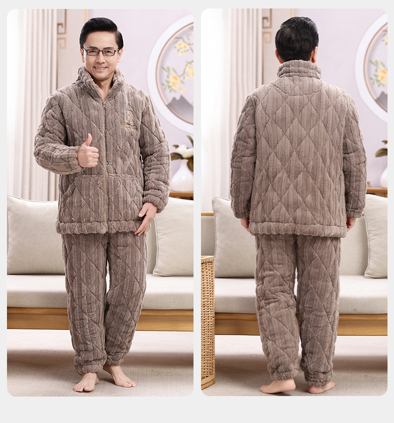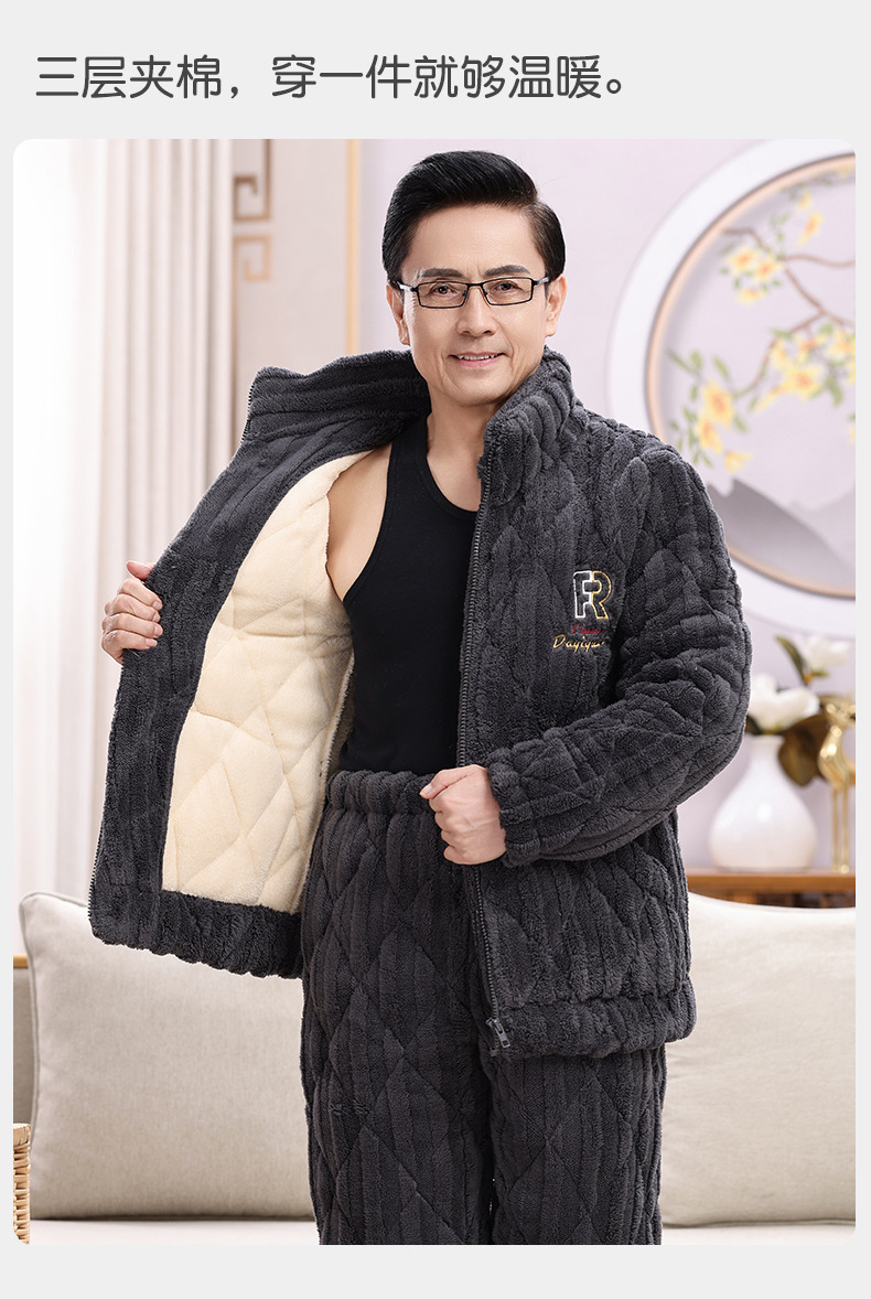 산호 양털 퀼트 파자마 남자 겨울 3 층 두꺼운 기모 따뜻한 2024 새로운 간단한 가정 옷 남성스토어 가기