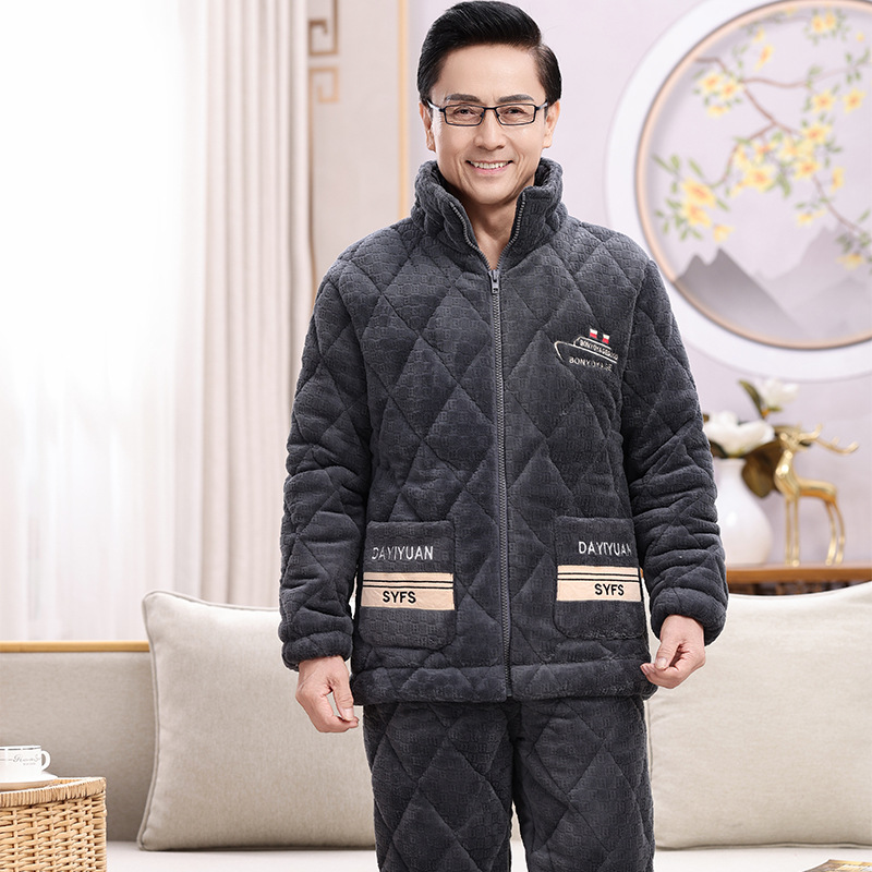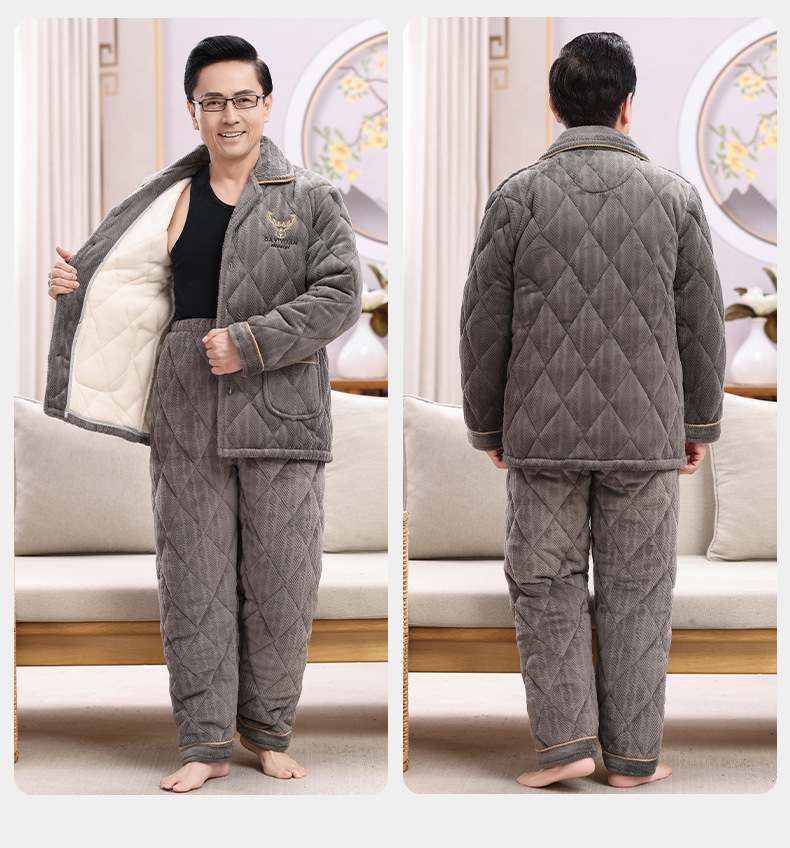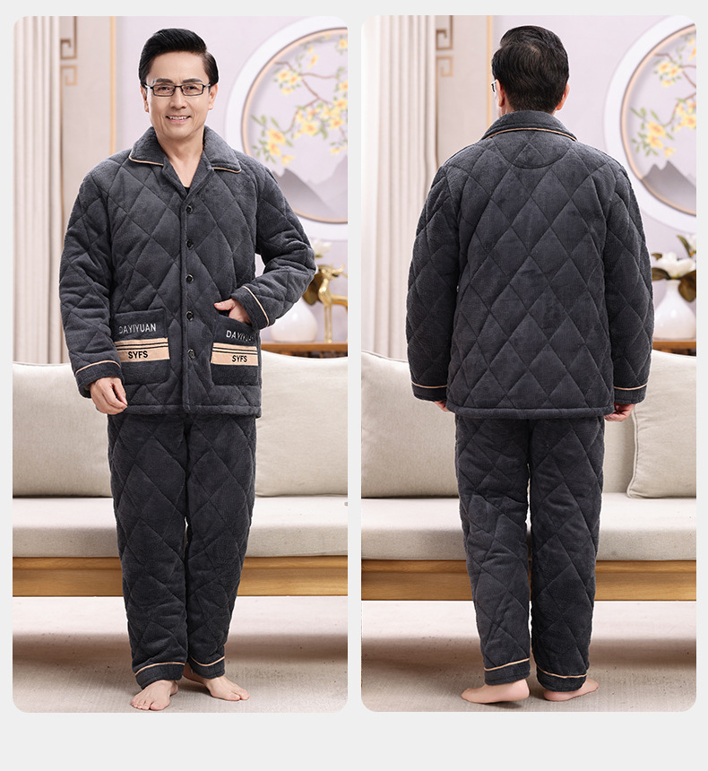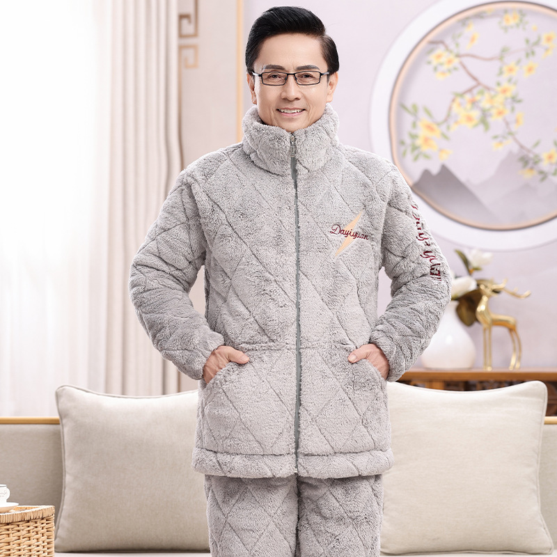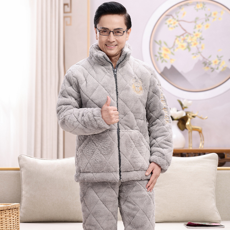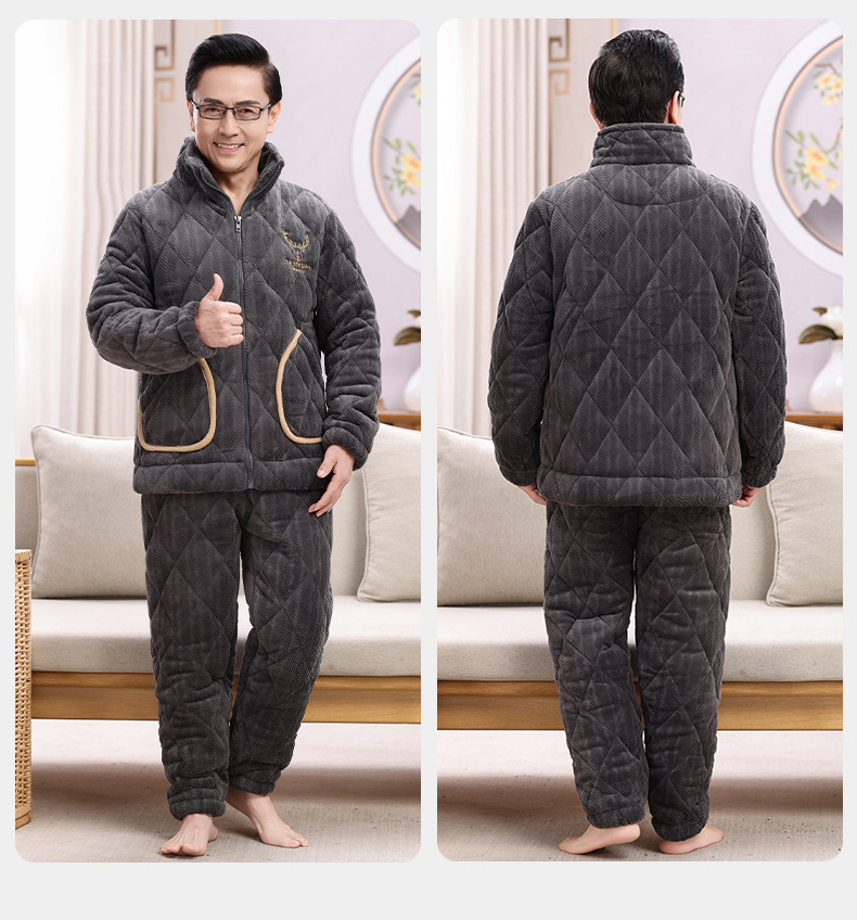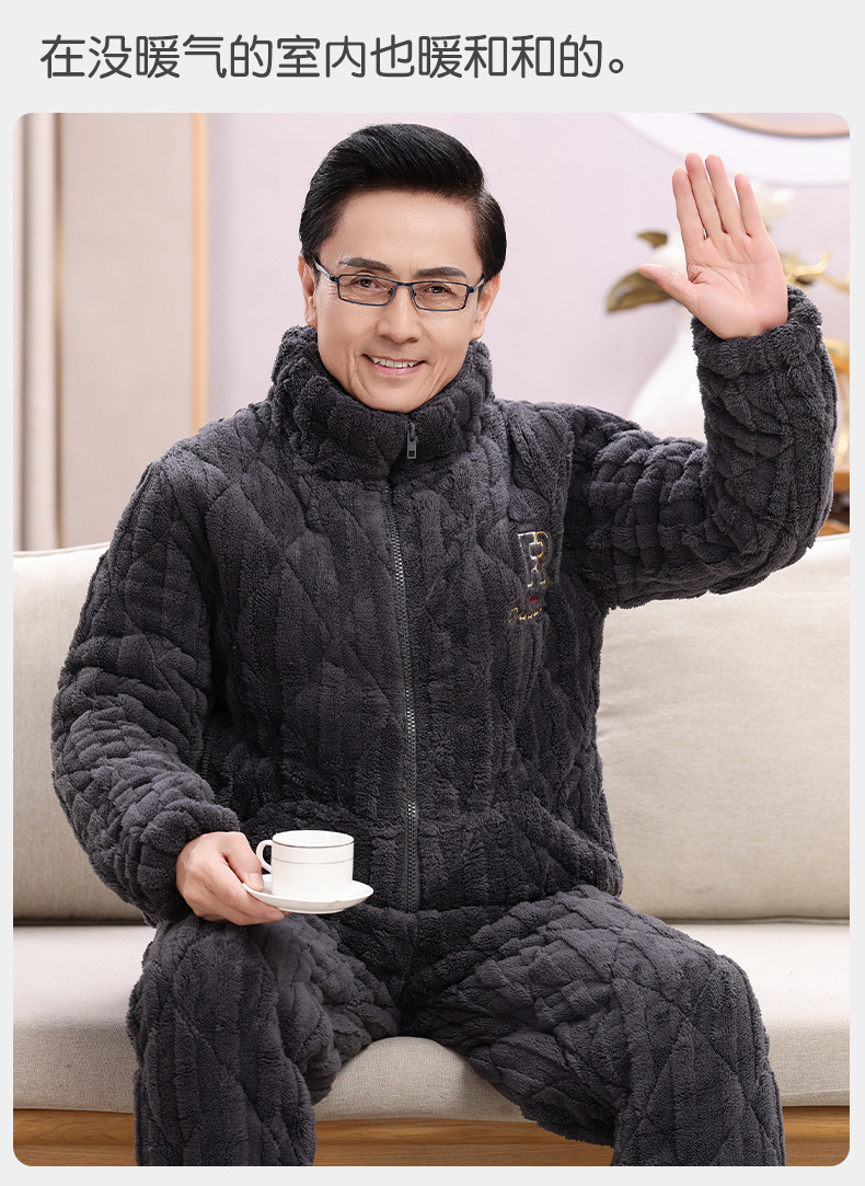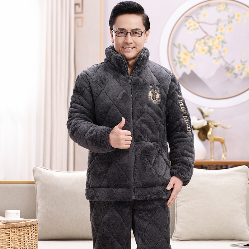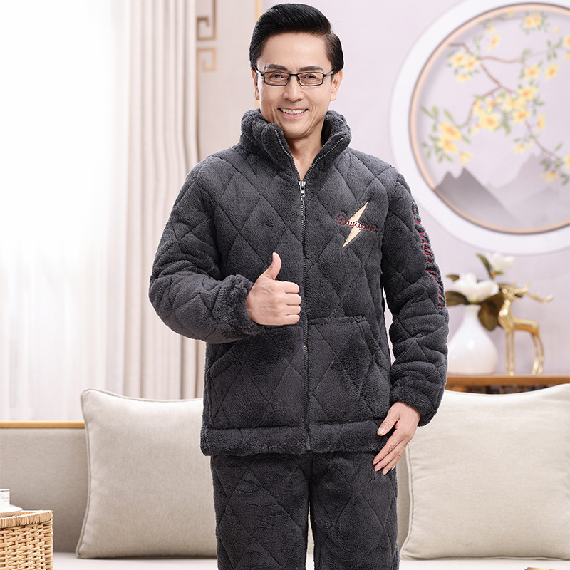 산호 양털 퀼트 파자마 남자 겨울 3 층 두꺼운 기모 따뜻한 2024 새로운 간단한 가정 옷 남성스토어 가기