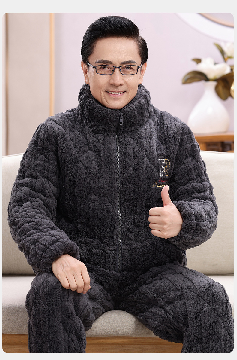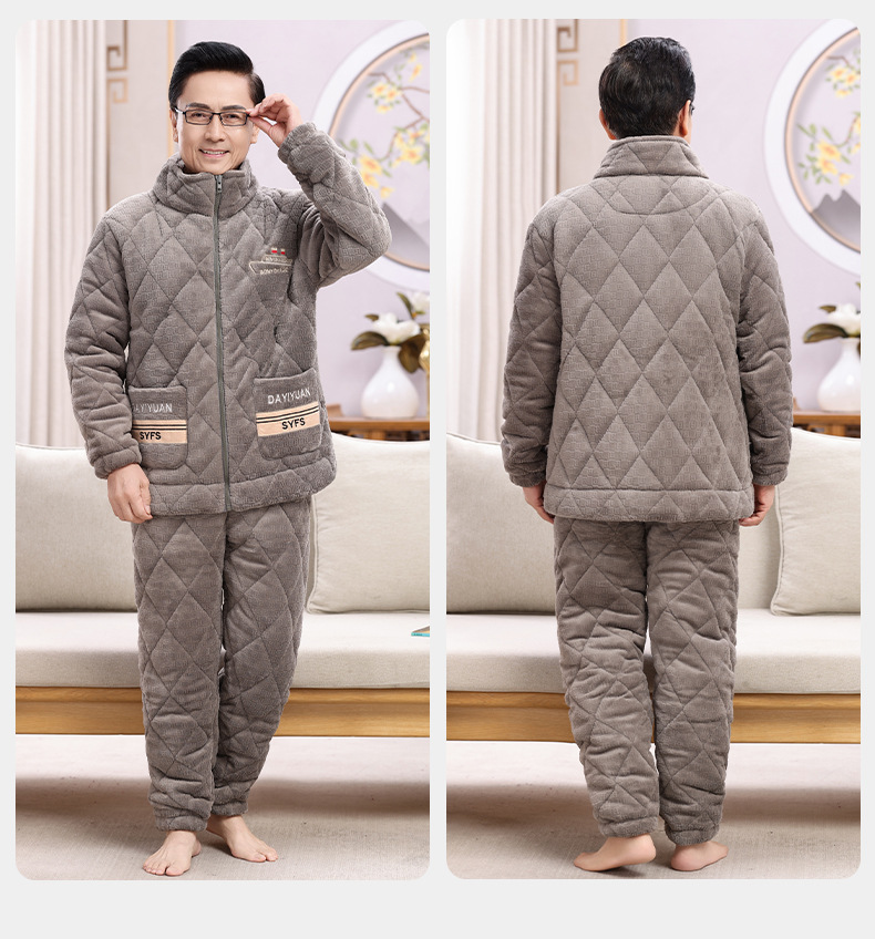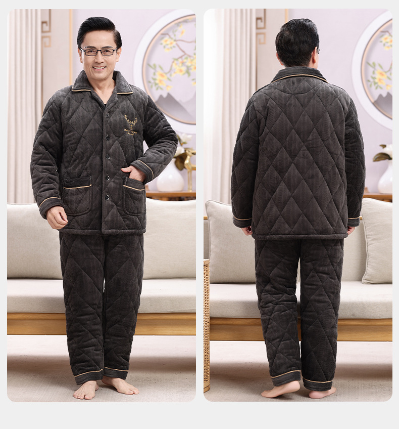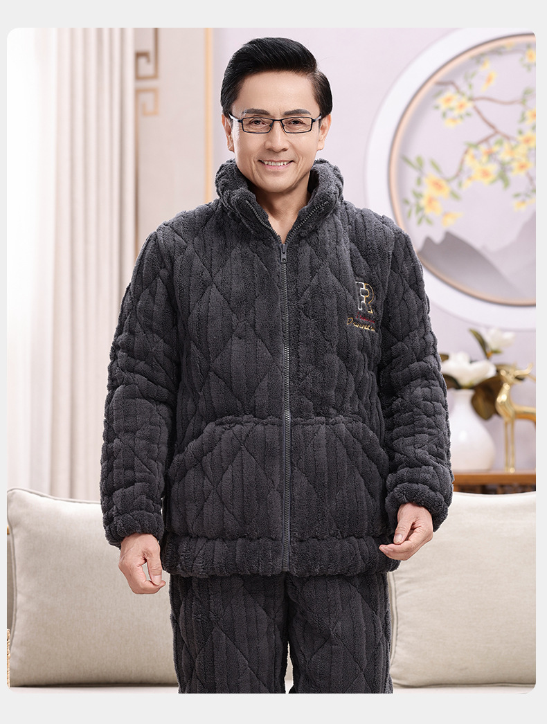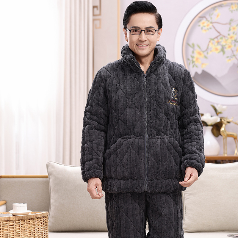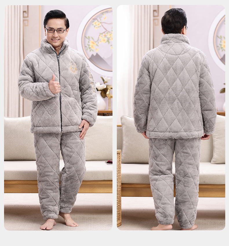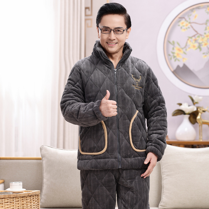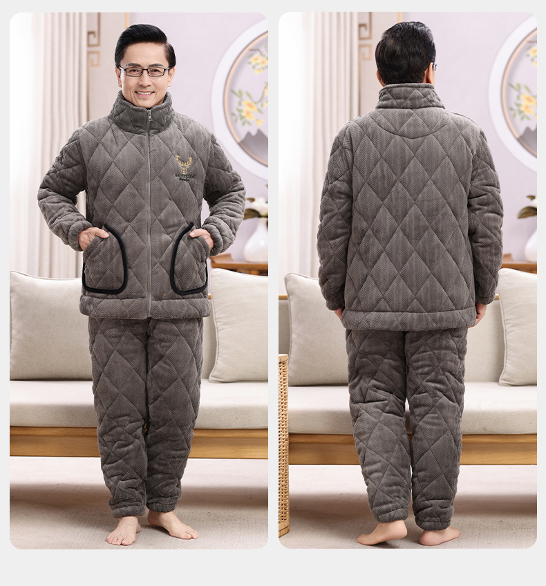 산호 양털 퀼트 파자마 남자 겨울 3 층 두꺼운 기모 따뜻한 2024 새로운 간단한 가정 옷 남성스토어 가기