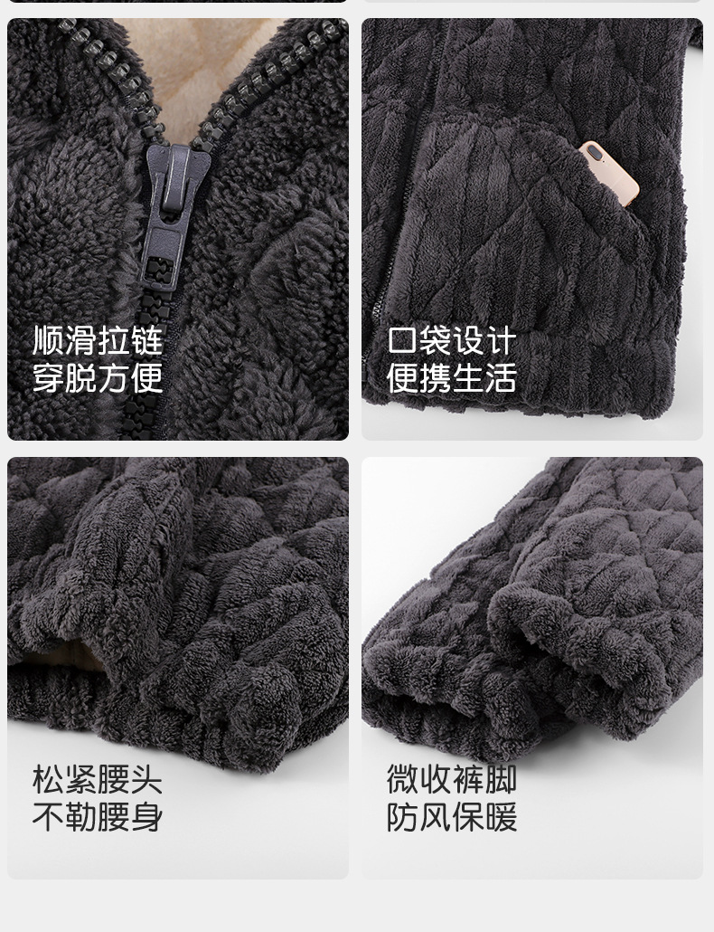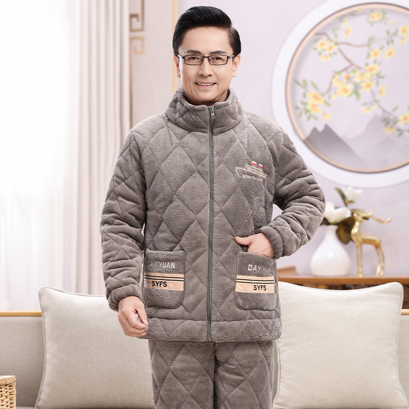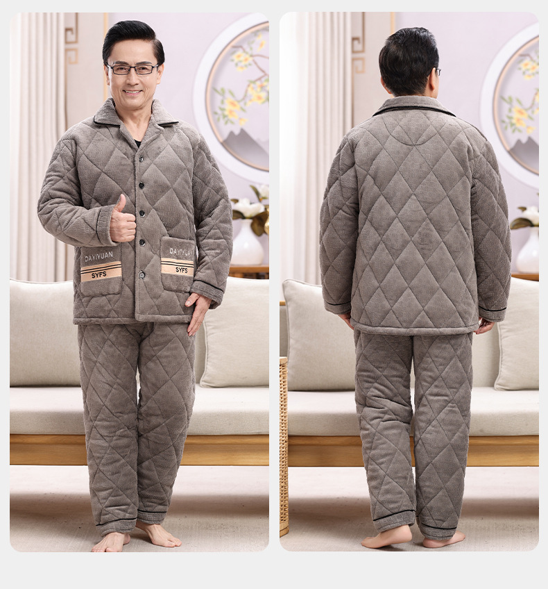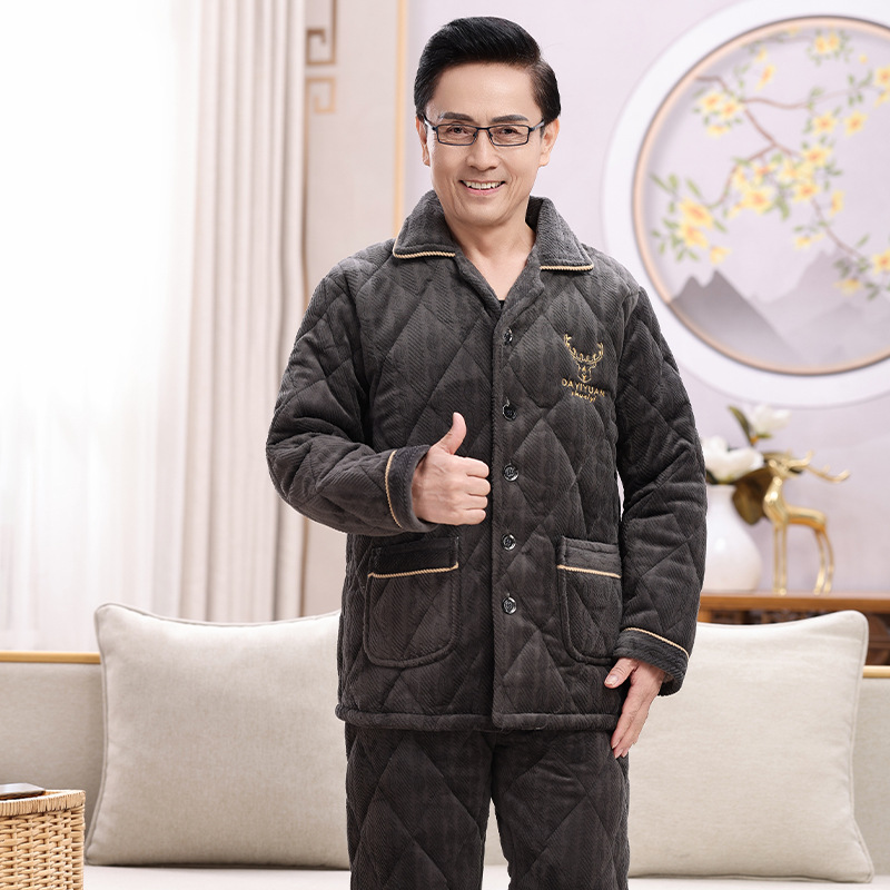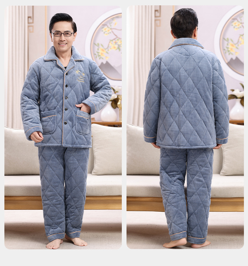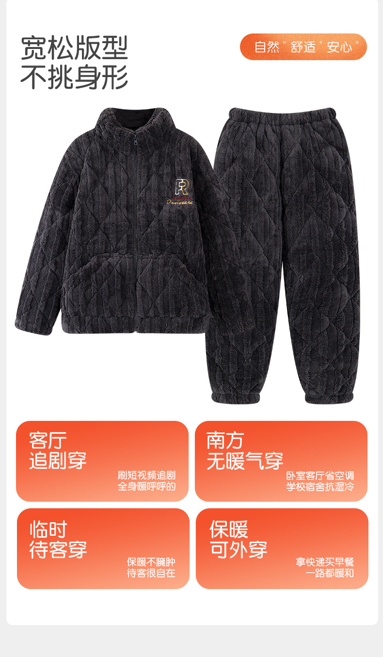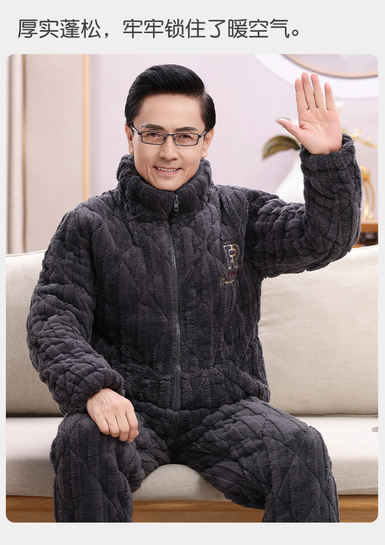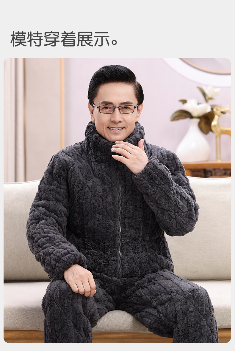 산호 양털 퀼트 파자마 남자 겨울 3 층 두꺼운 기모 따뜻한 2024 새로운 간단한 가정 옷 남성스토어 가기