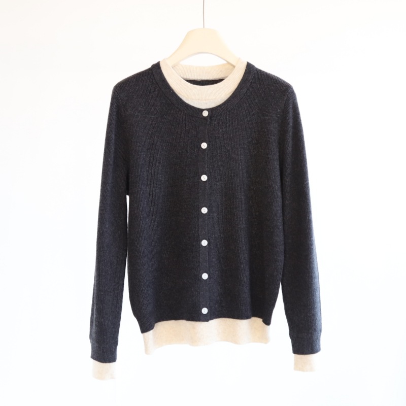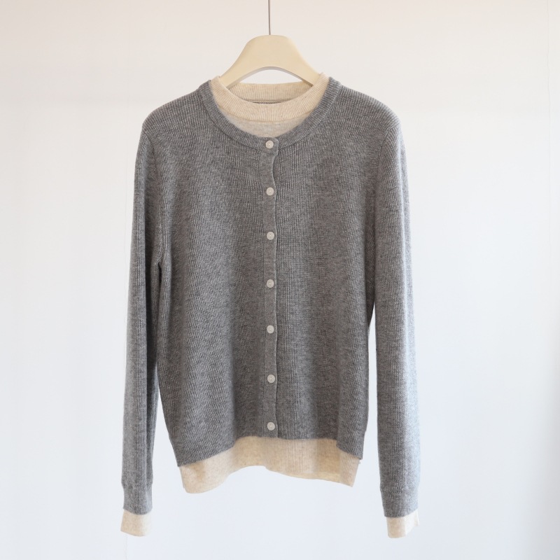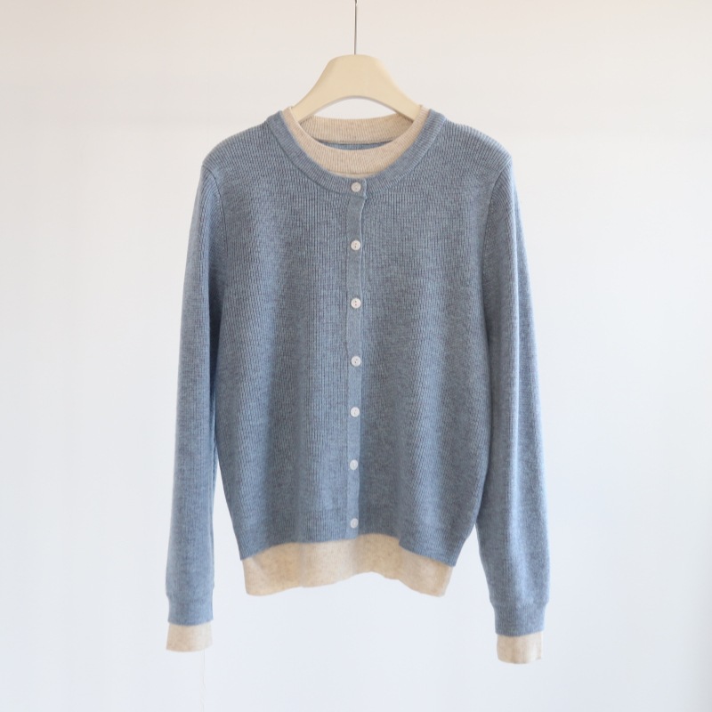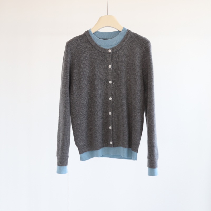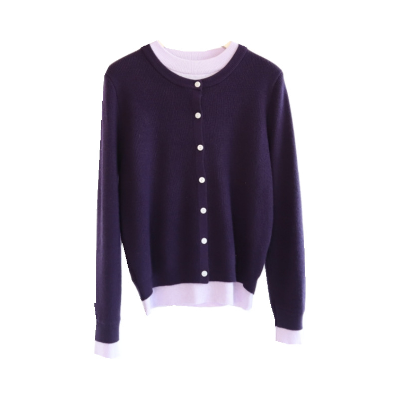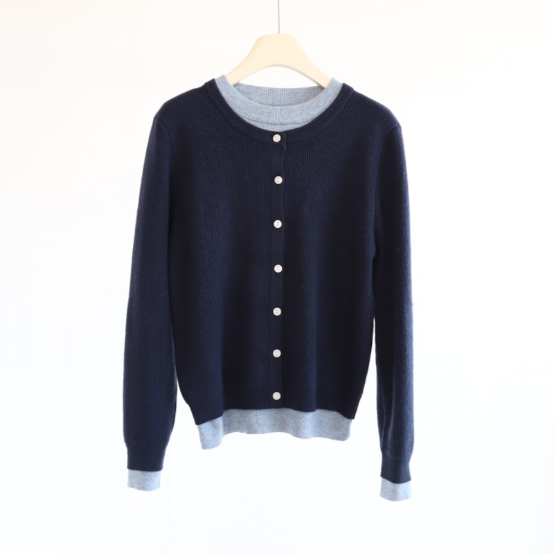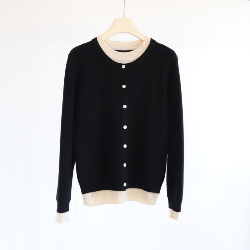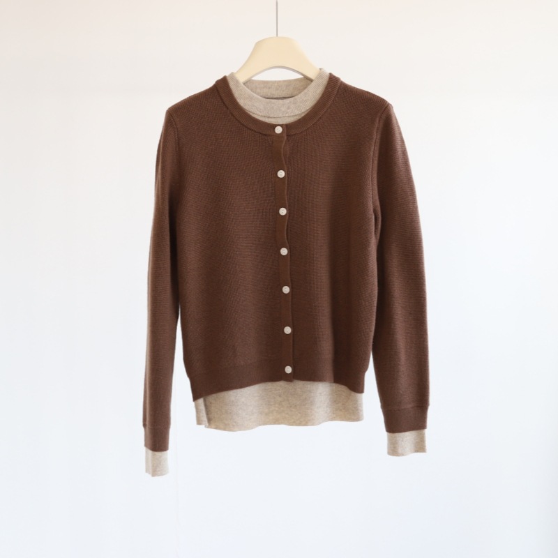가을과 겨울 가짜 투피스 두꺼운 컬러 블록 니트 카디건 최고 여성 긴팔 풀오버 싱글 브레스트 콘트라스트 컬러 코트 스웨터스토어 가기