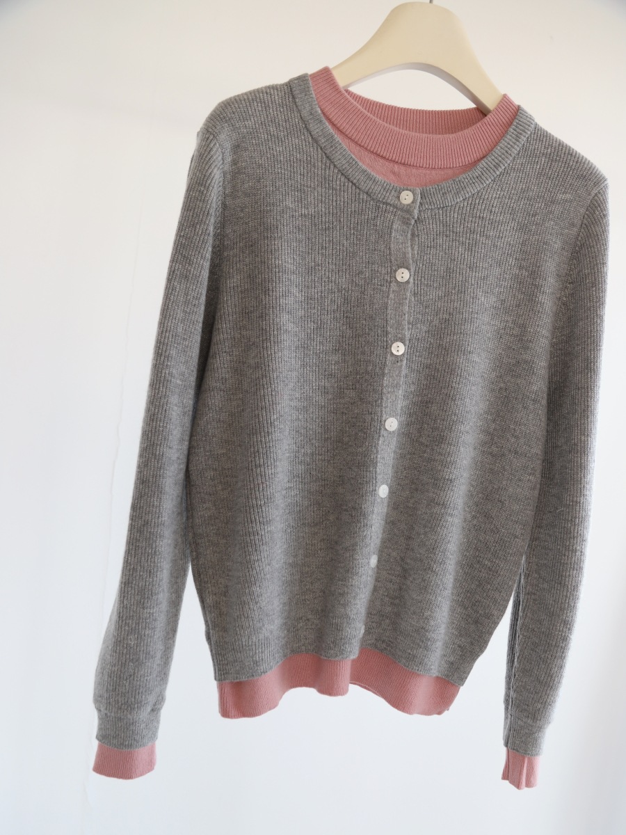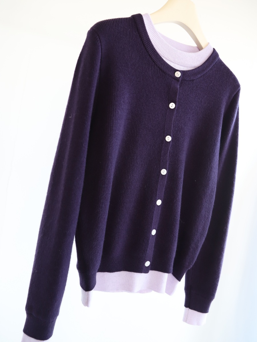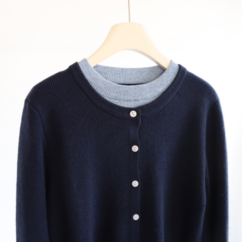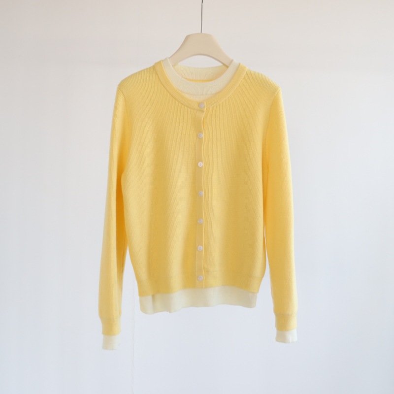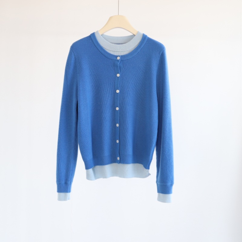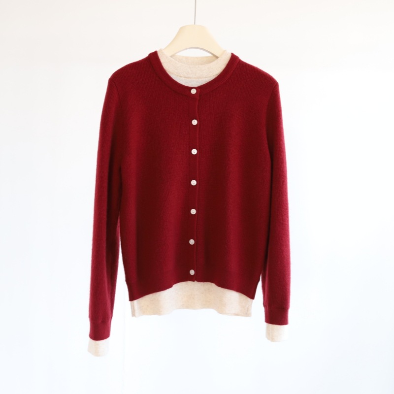 가을과 겨울 가짜 투피스 두꺼운 컬러 블록 니트 카디건 최고 여성 긴팔 풀오버 싱글 브레스트 콘트라스트 컬러 코트 스웨터스토어 가기