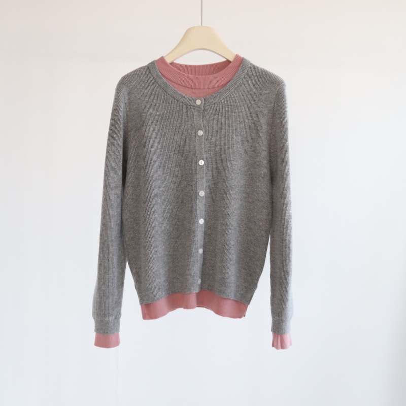 가을과 겨울 가짜 투피스 두꺼운 컬러 블록 니트 카디건 최고 여성 긴팔 풀오버 싱글 브레스트 콘트라스트 컬러 코트 스웨터