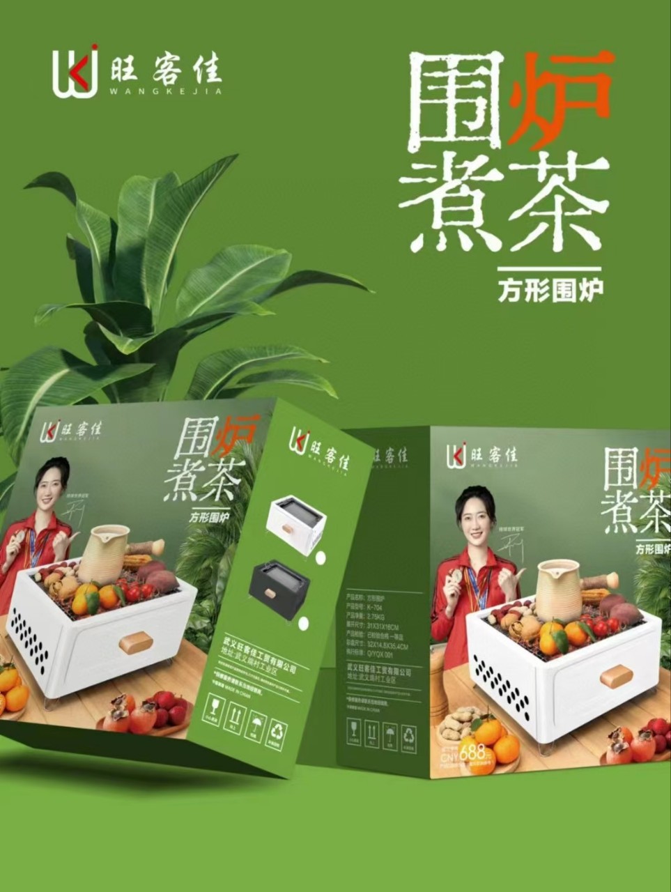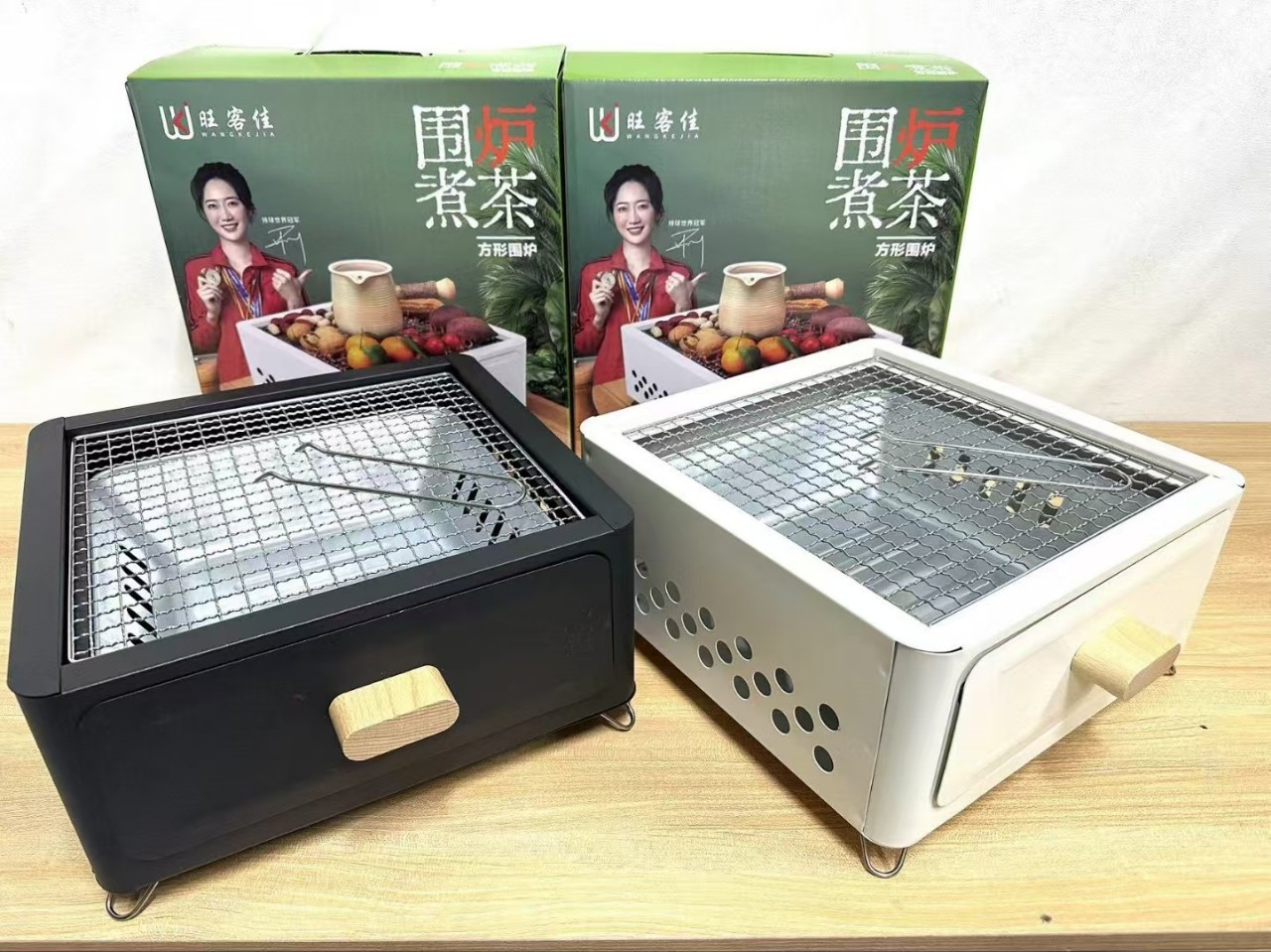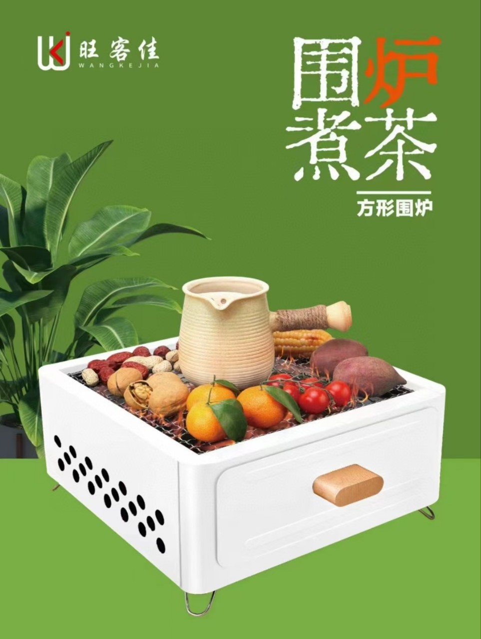 Wangkakjia 광장 동그라미 바베큐 스토브 가정용 숯불 바베큐 야외 휴대용 바베큐 스토브 차 요리 스토브