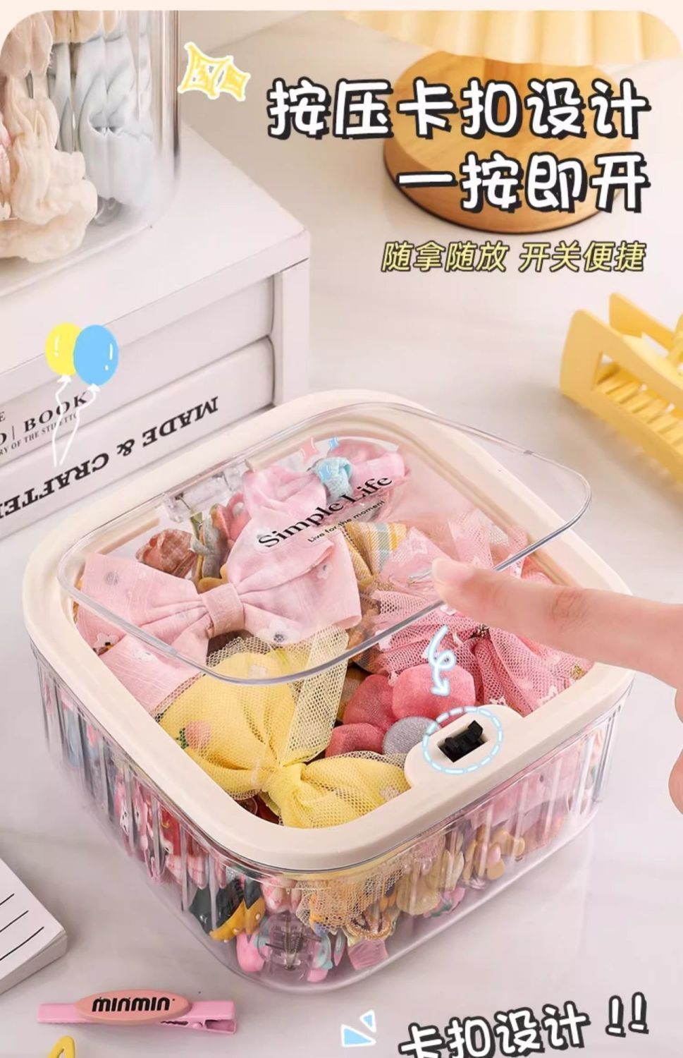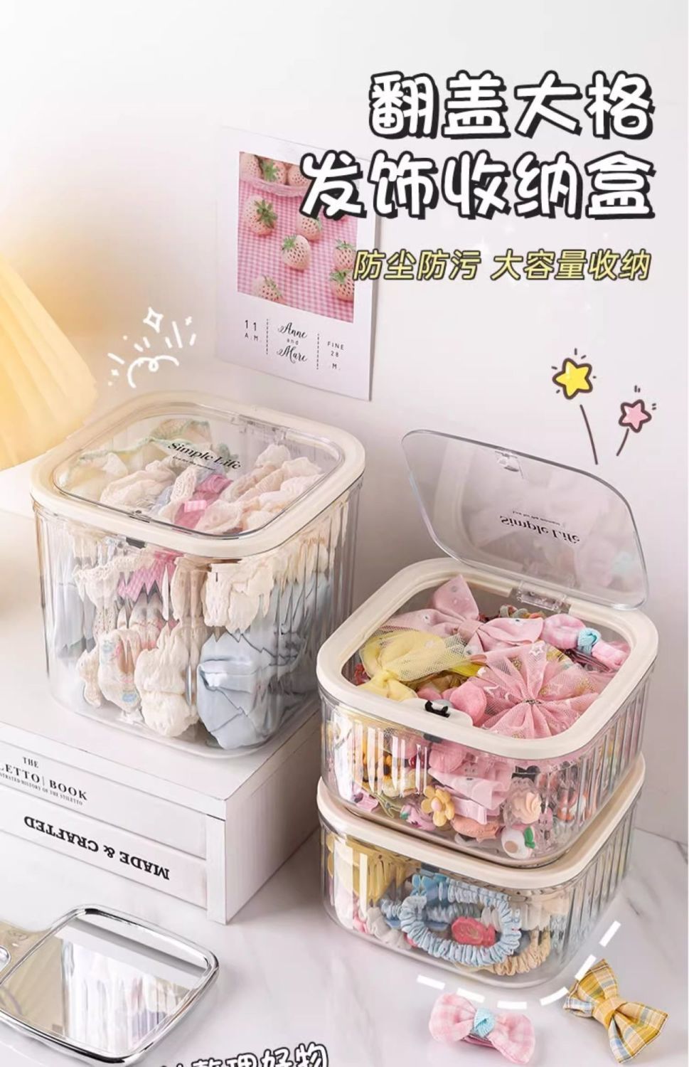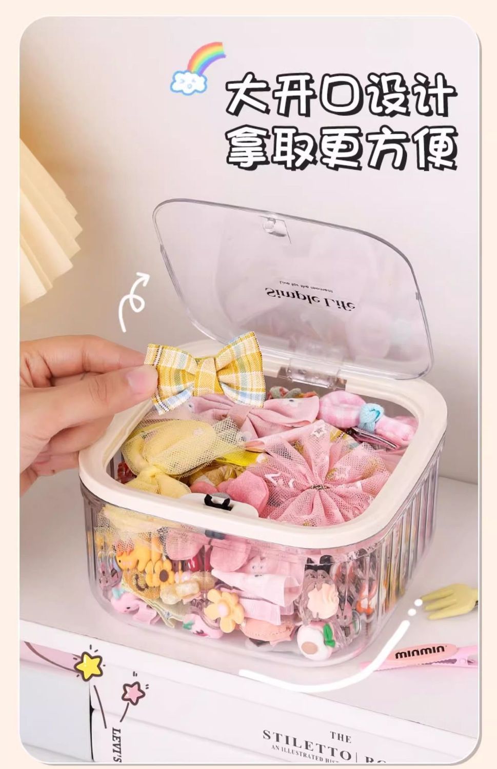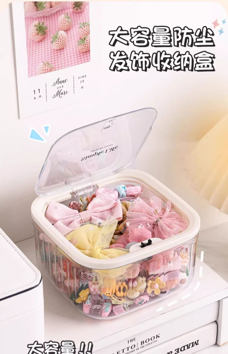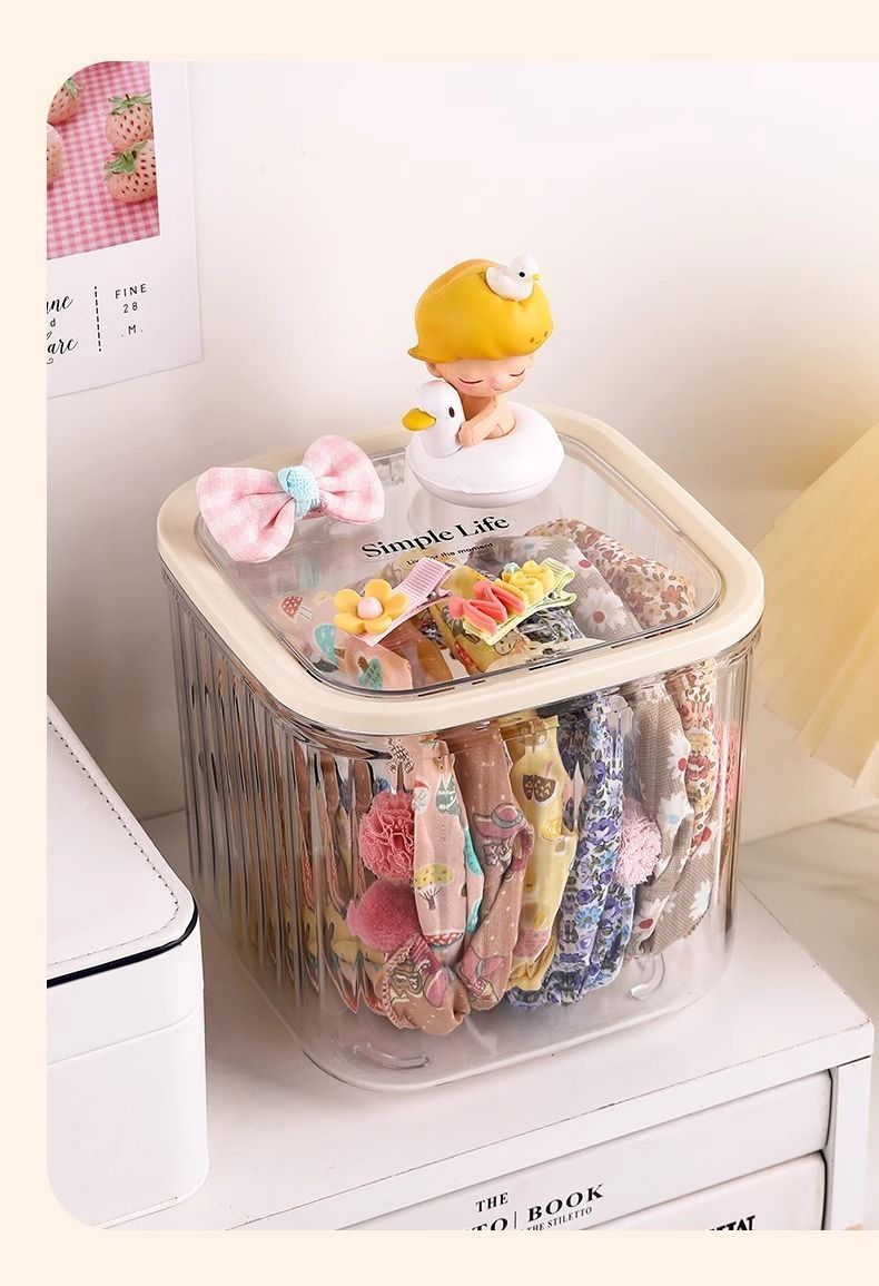 어린이 헤어 액세서리 보관 상자 탁상용 대형 보석 상자 뚜껑 소녀의 고무 밴드 헤어 로프 헤어핀 귀여운 곡물 마감 상자스토어 가기