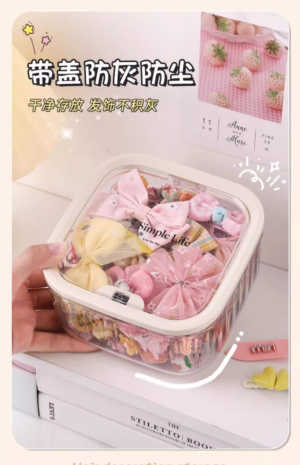 어린이 헤어 액세서리 보관 상자 탁상용 대형 보석 상자 뚜껑 소녀의 고무 밴드 헤어 로프 헤어핀 귀여운 곡물 마감 상자