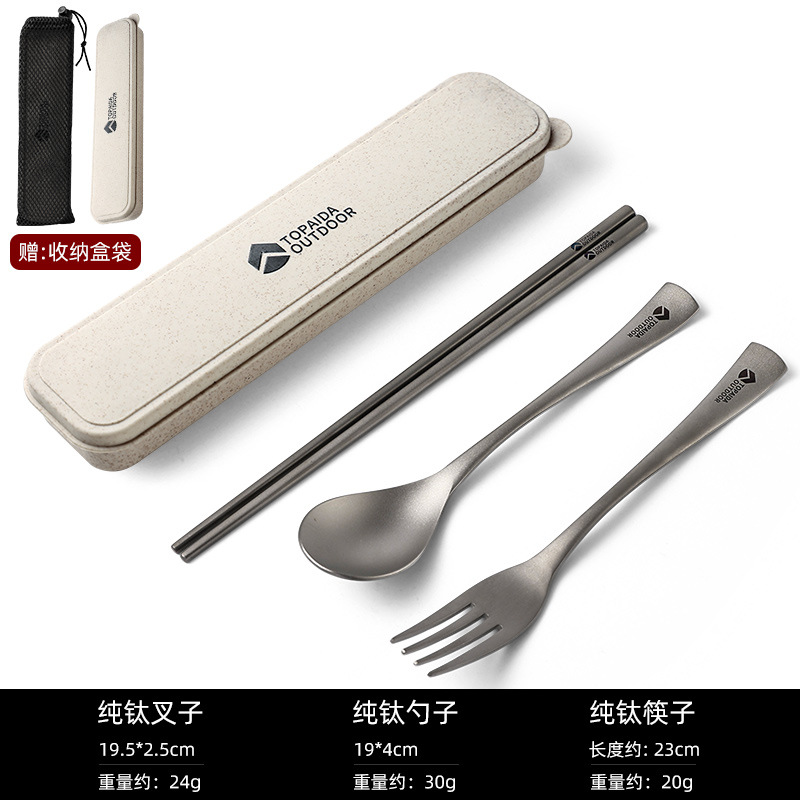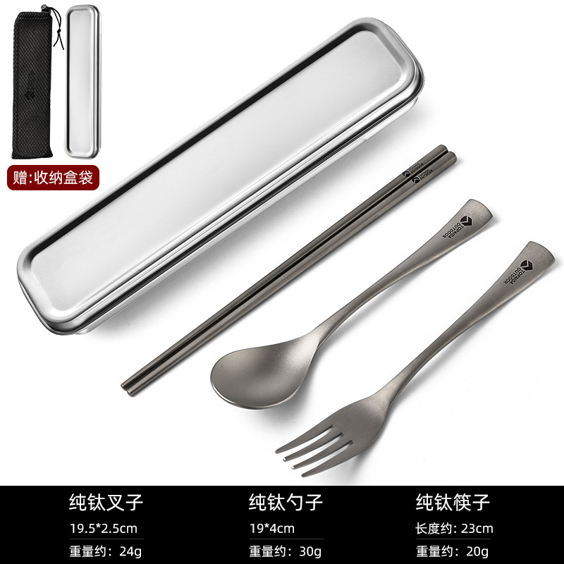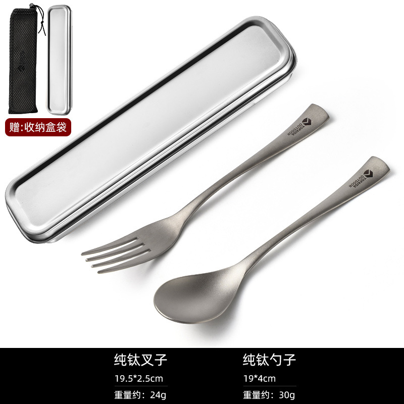 • 순수 티타늄 포크 + 스푼 [무료 보관 가방 + 304 상자]