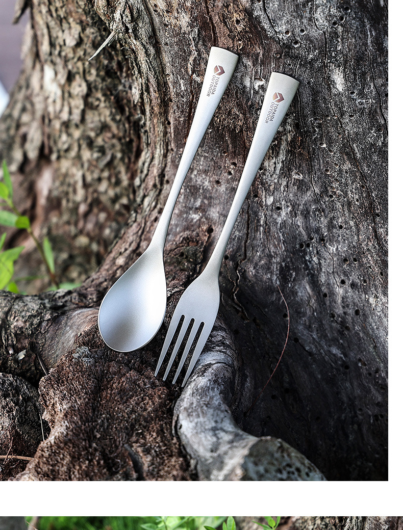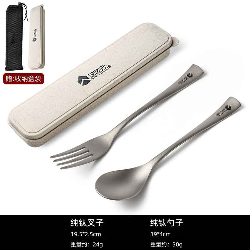 • 순수 티타늄 포크 + 스푼 [무료 보관 가방 + 상자]