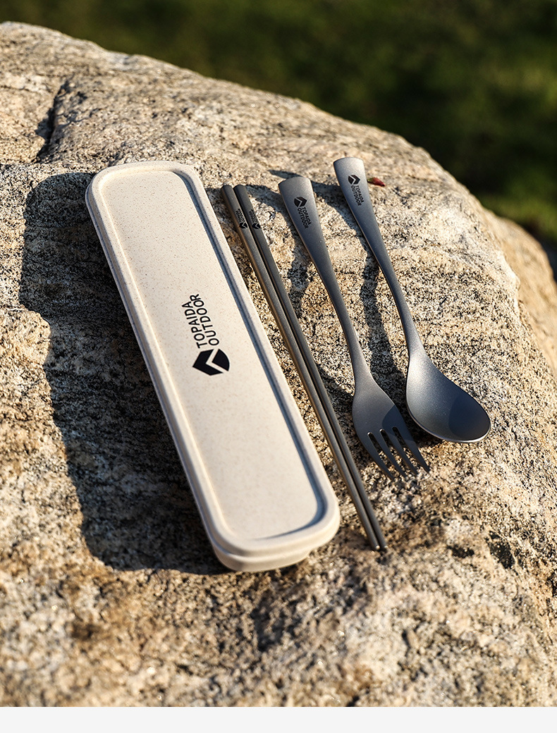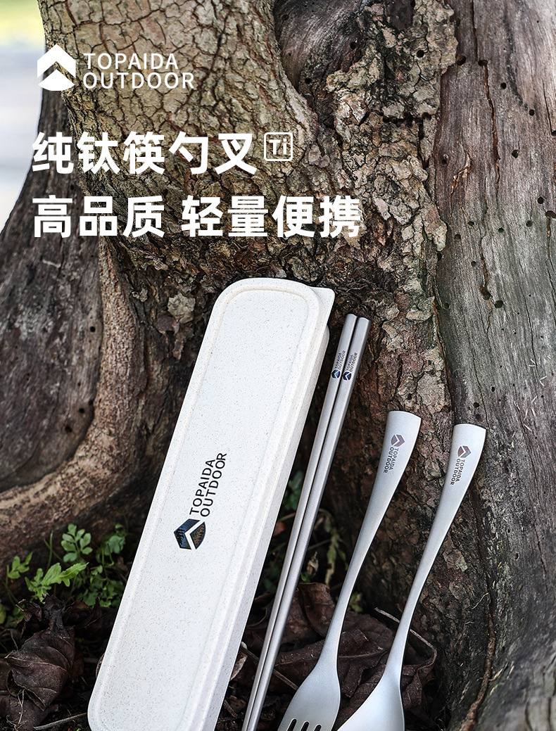 순수 티타늄 야외 식기 새로운 조합 캠핑 스푼 포크 젓가락 세트 피크닉 여행 하이킹 울트라 라이트 휴대용 식기스토어 가기