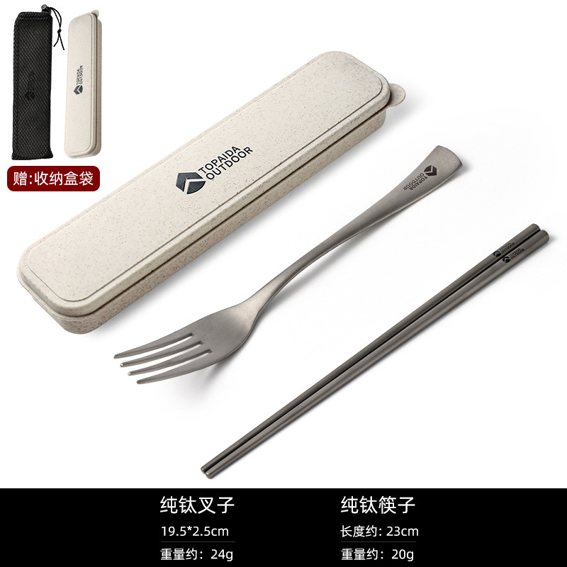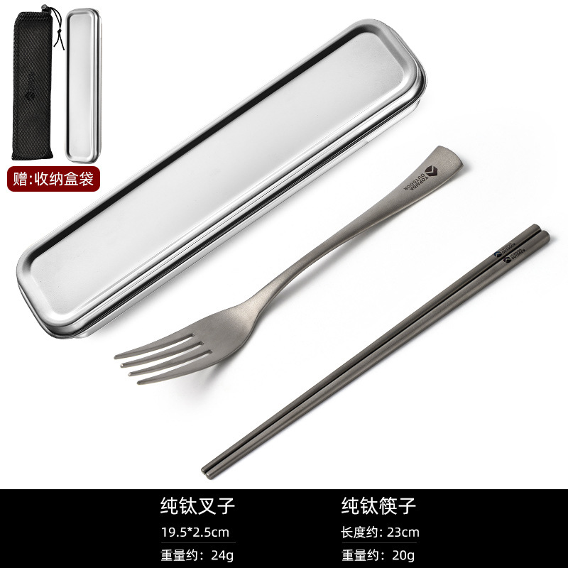 • 순수 티타늄 젓가락 + 포크 [무료 보관 가방 + 304 상자]