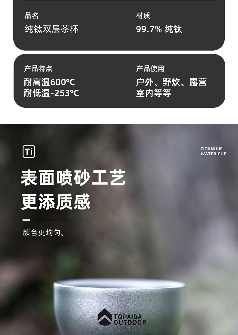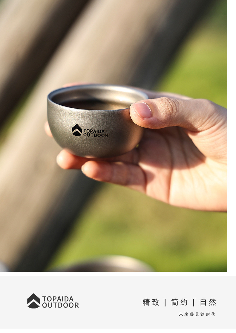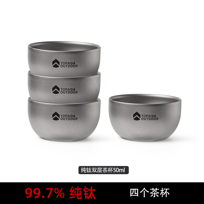 순수한 티타늄 차 컵 쿵푸 차 단일 세트 야외 캠핑 차 시음 컵 개인 특별 싱글 컵 더블 레이어 단열 방지스토어 가기