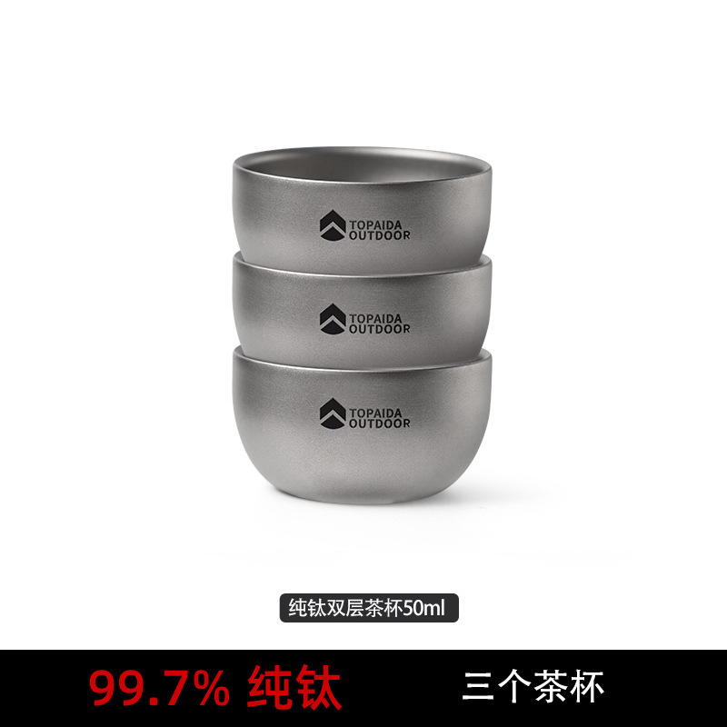 • 순수 티타늄 이중층 찻잔 3개