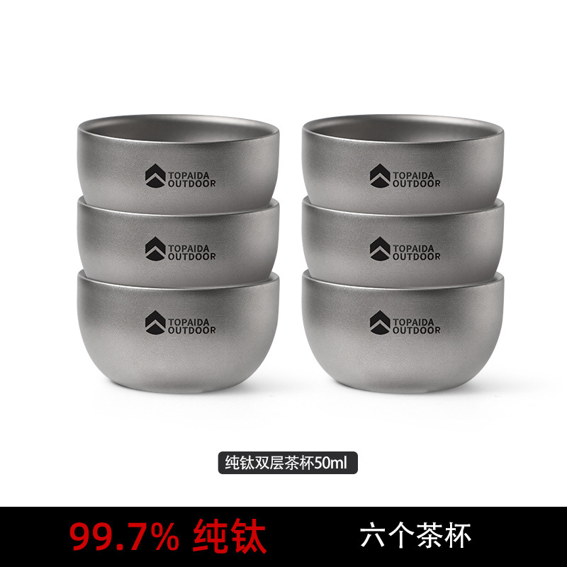 • 순수 티타늄 더블 레이어 찻잔 6개