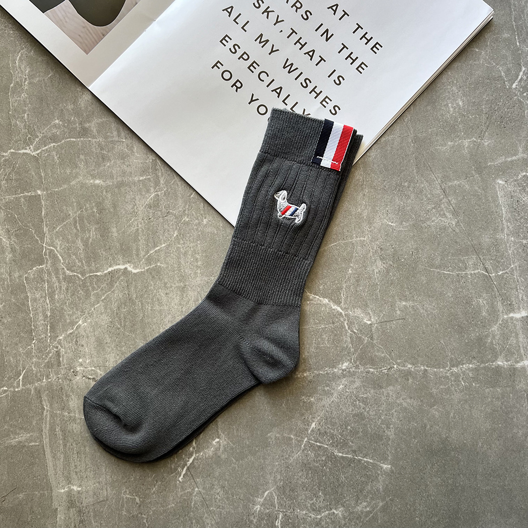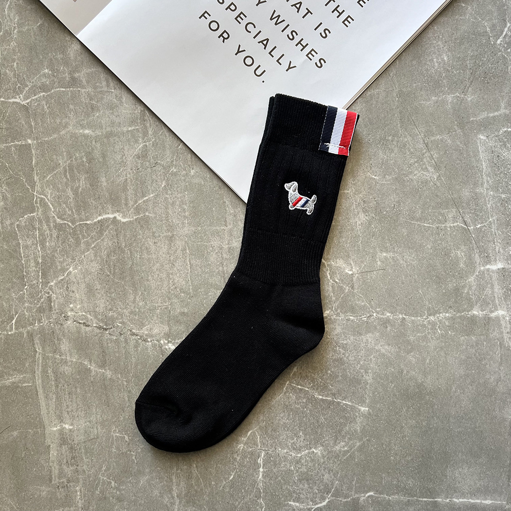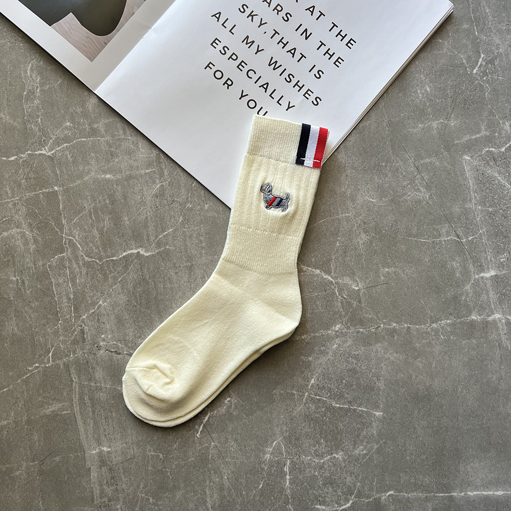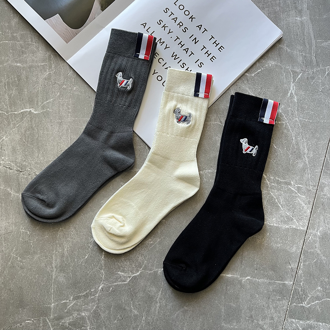 가을과 겨울 새로운 만화 TB 천 라벨 다리 쌓인 양말 영국 스타일 자수 강아지 빨강, 흰색 및 파랑 스트립 여성의 중간 길이 양말스토어 가기