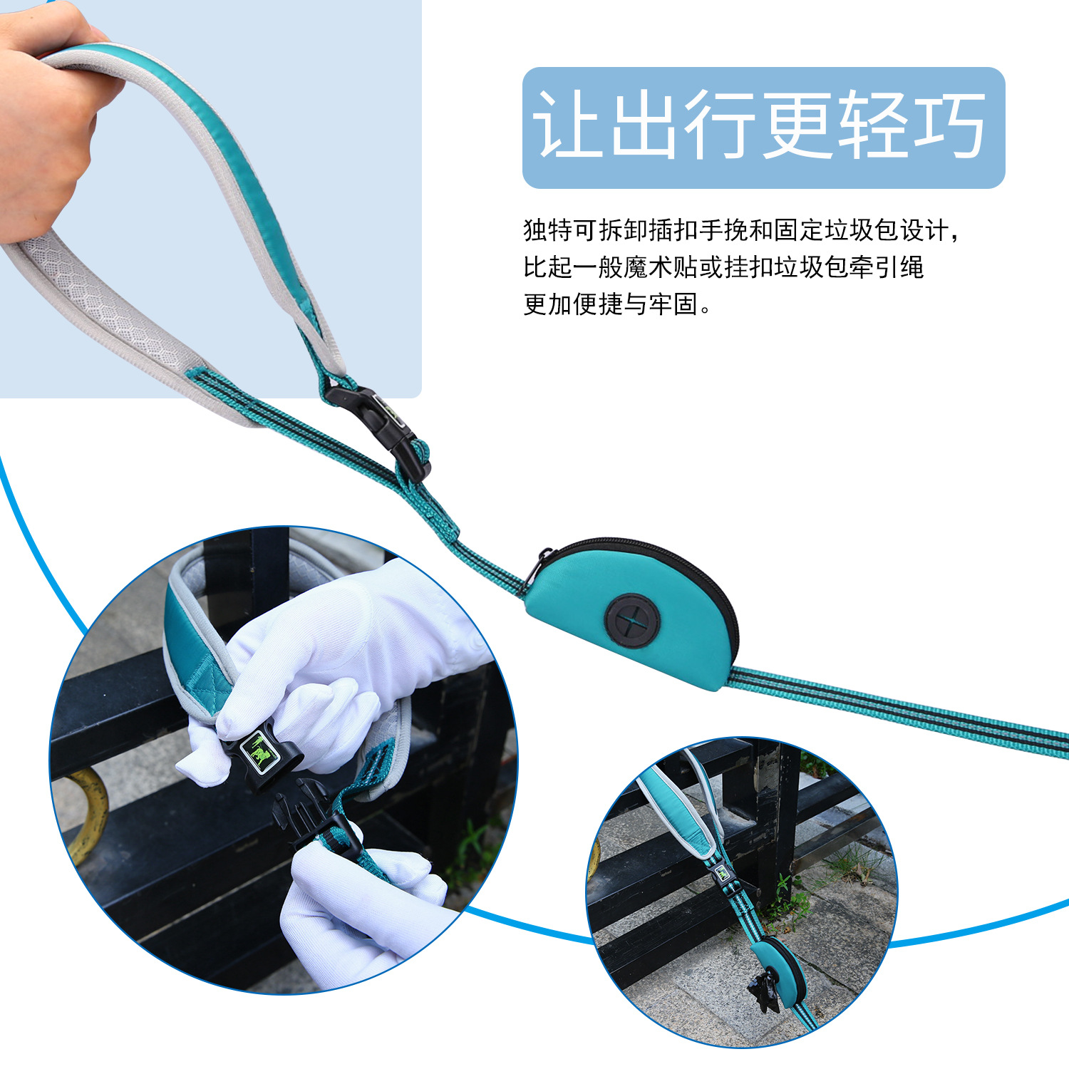 3、手挽特别加厚,遛宠不勒手,耐磨防拉断
